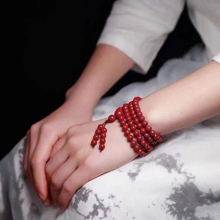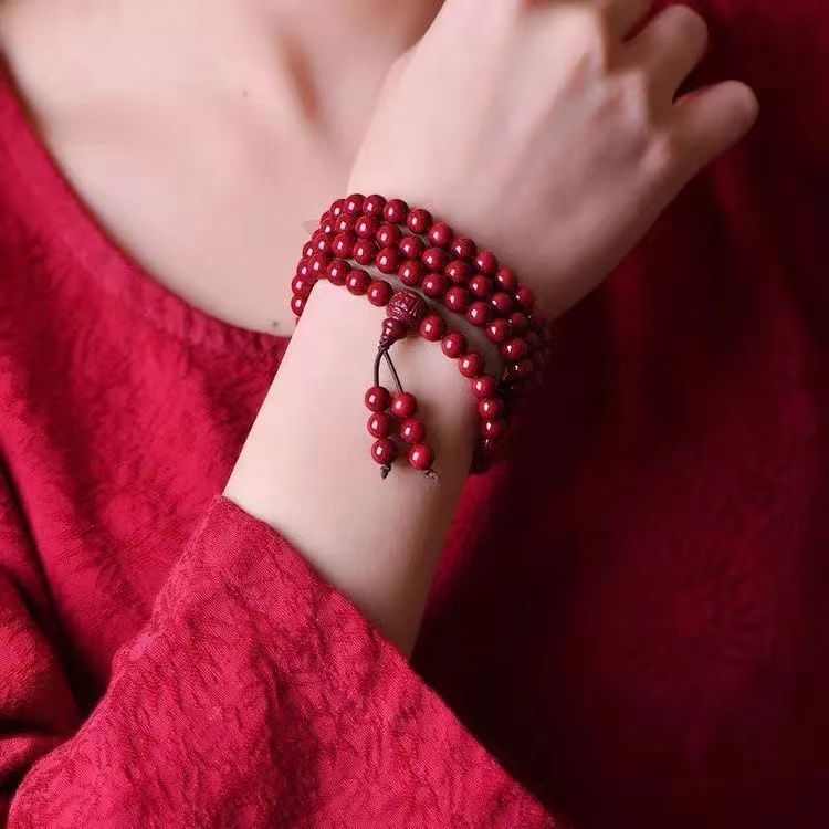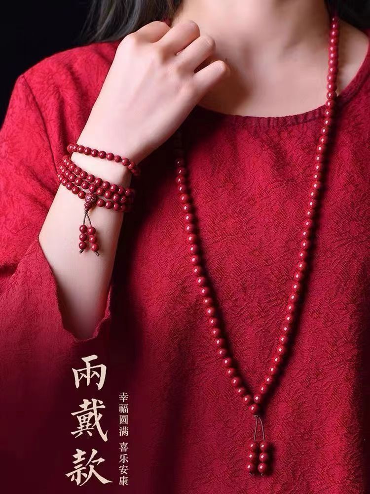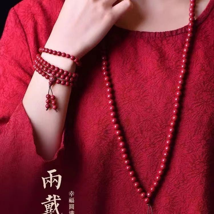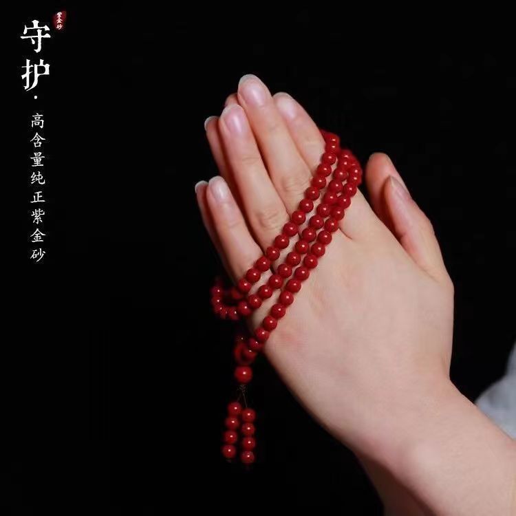 湘西原矿朱砂手链高含量紫金帝王砂108颗项链男女款本命礼物