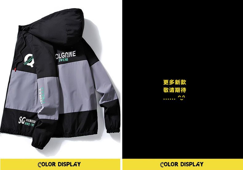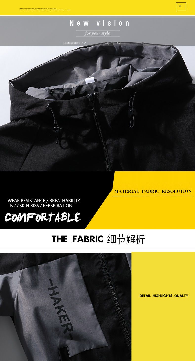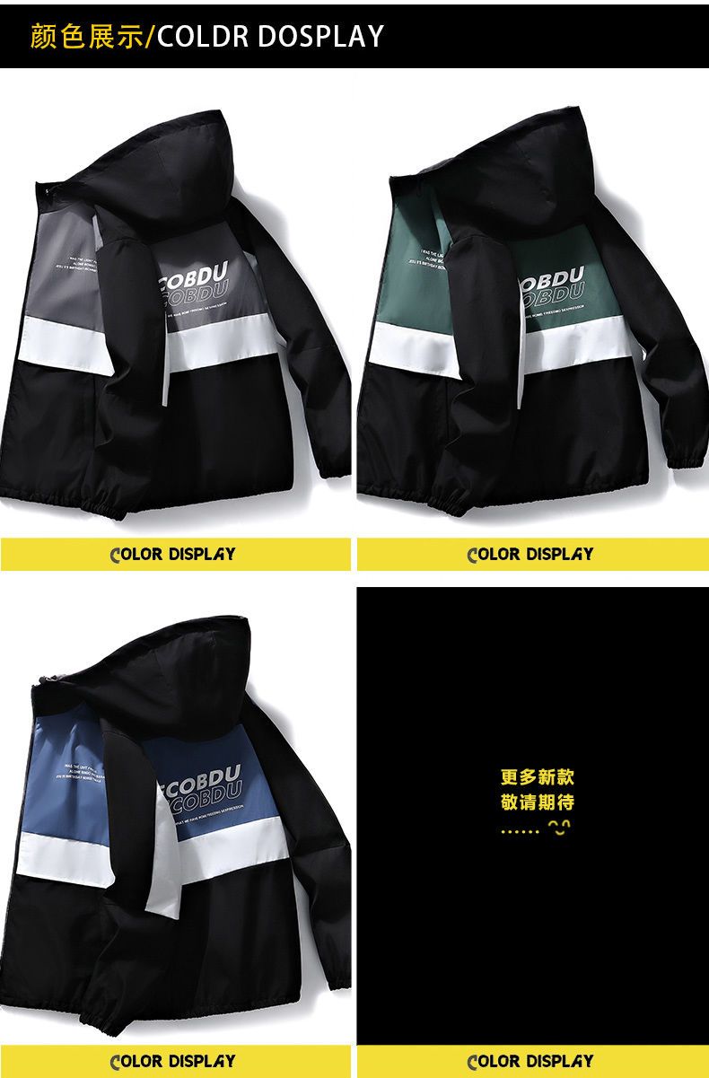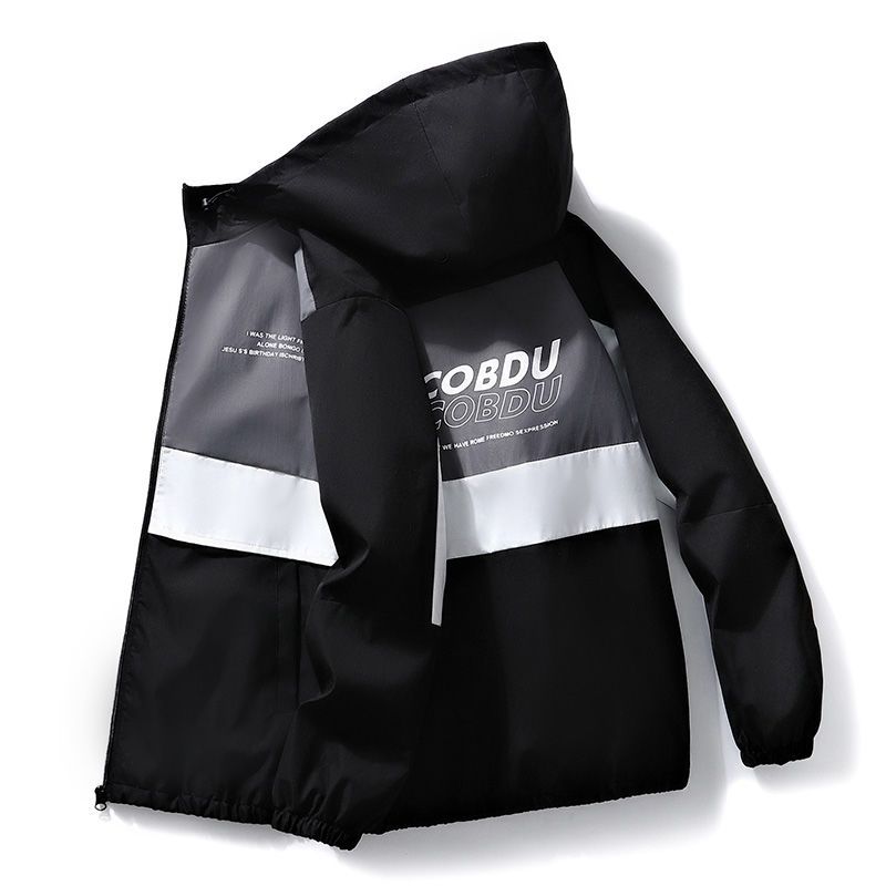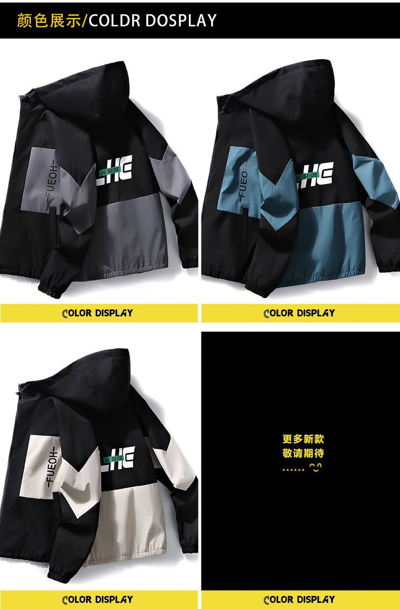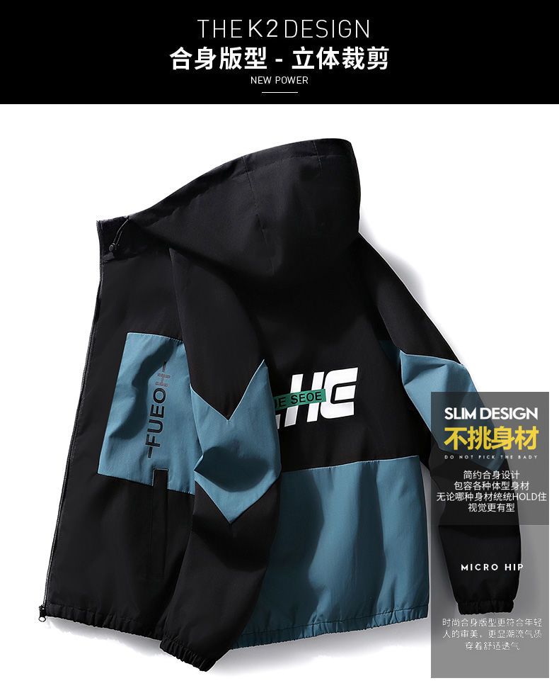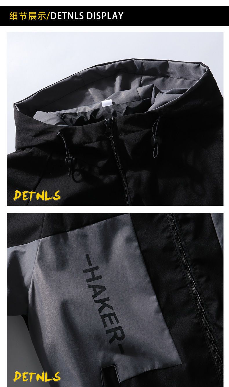 春秋男士外套潮流韩版夹克青少年学生连帽褂子薄款休闲工装上衣服