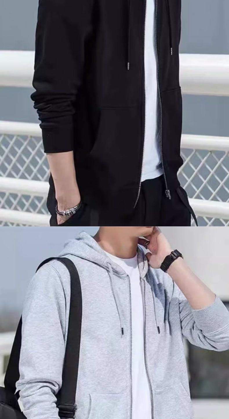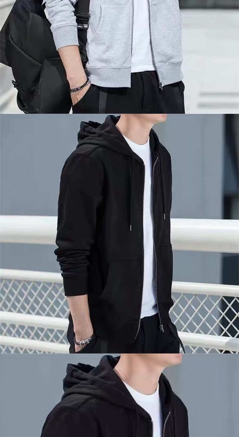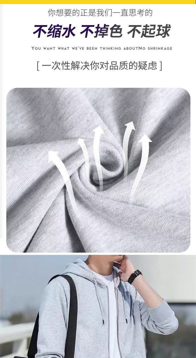 春秋季开衫连帽夹克卫衣男薄款帽衫拉链外套加肥大码休闲外穿上衣