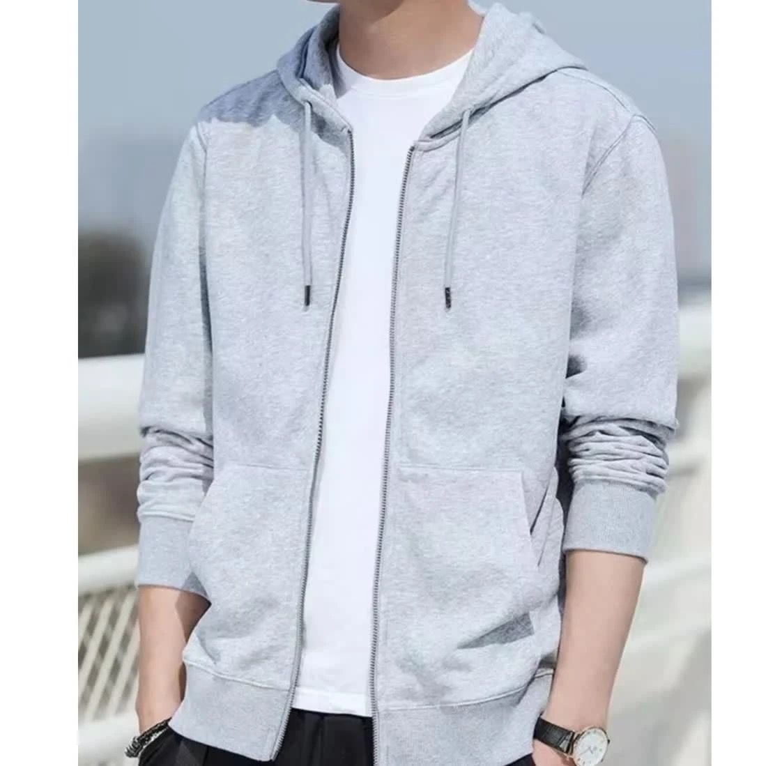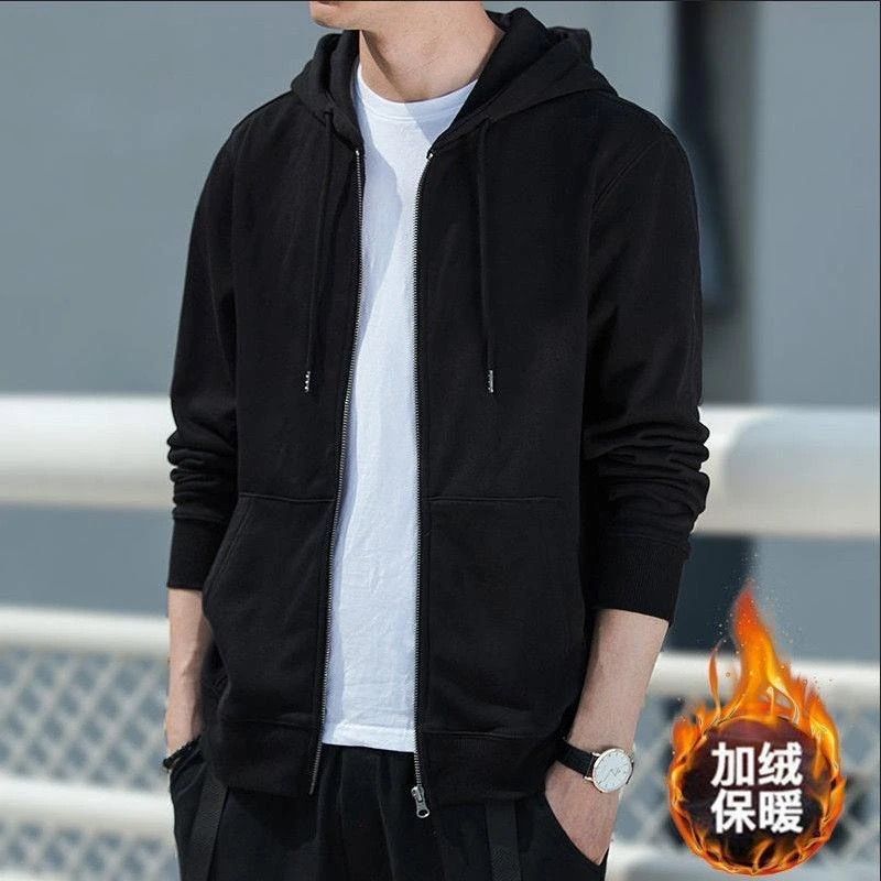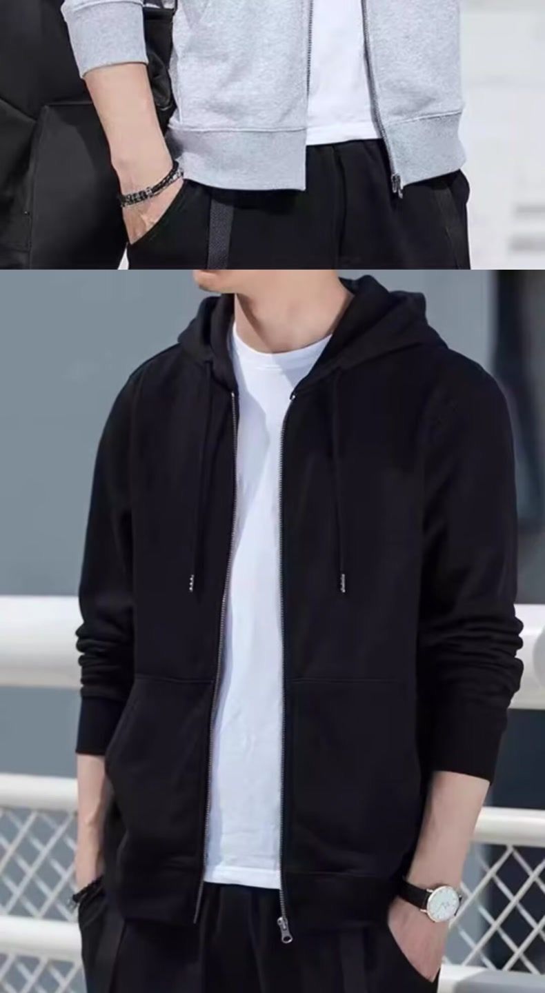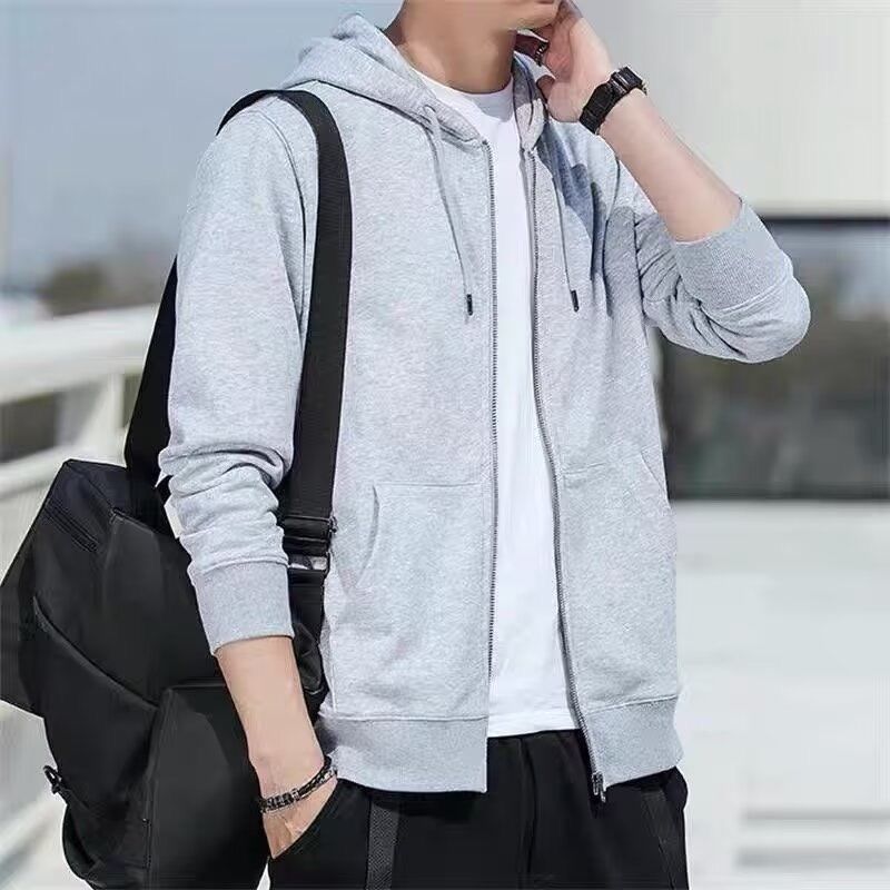 春秋季开衫连帽夹克卫衣男薄款帽衫拉链外套加肥大码休闲外穿上衣