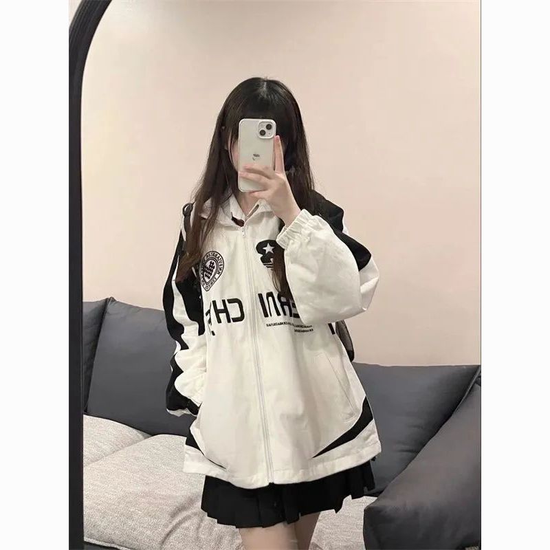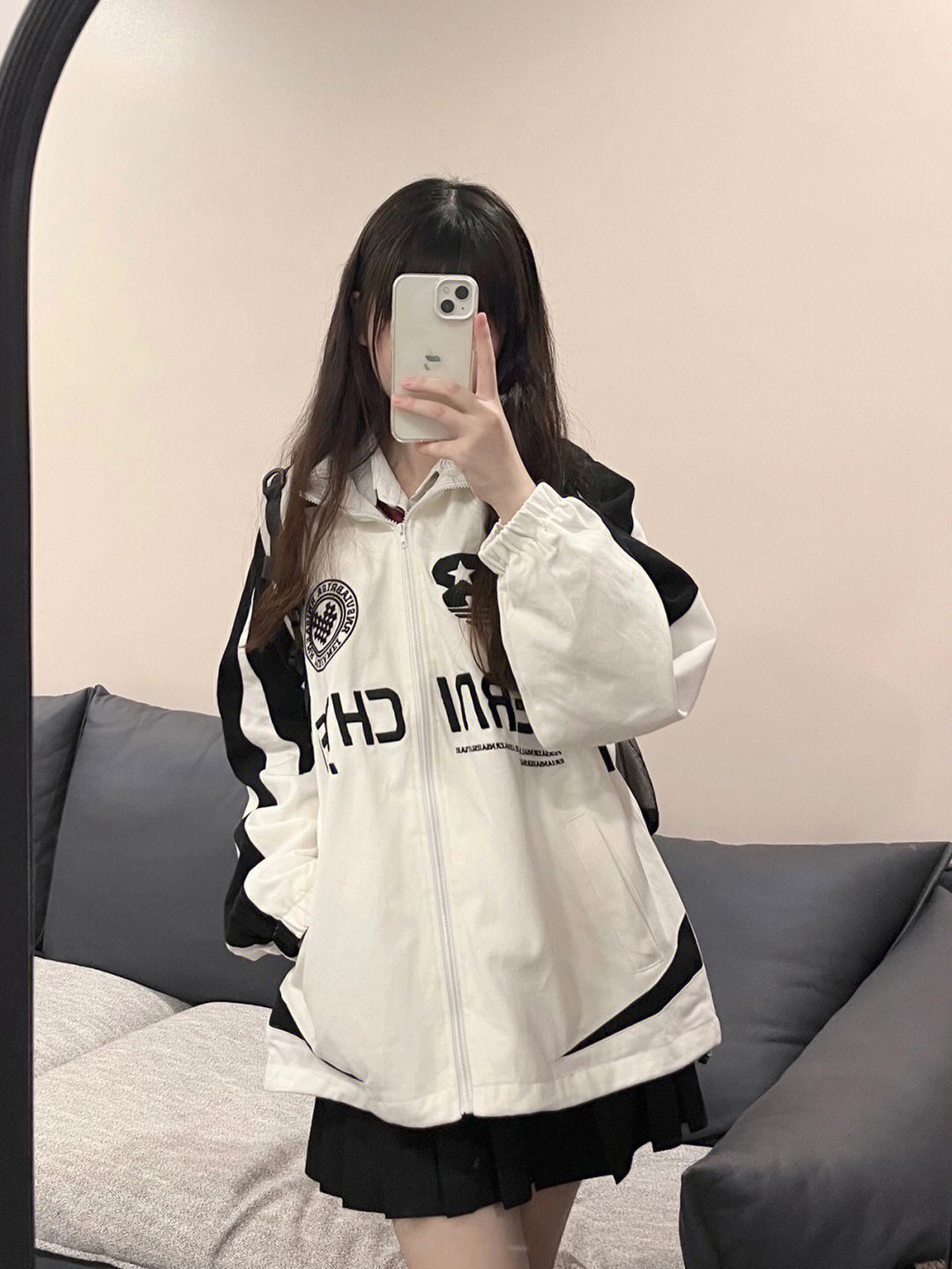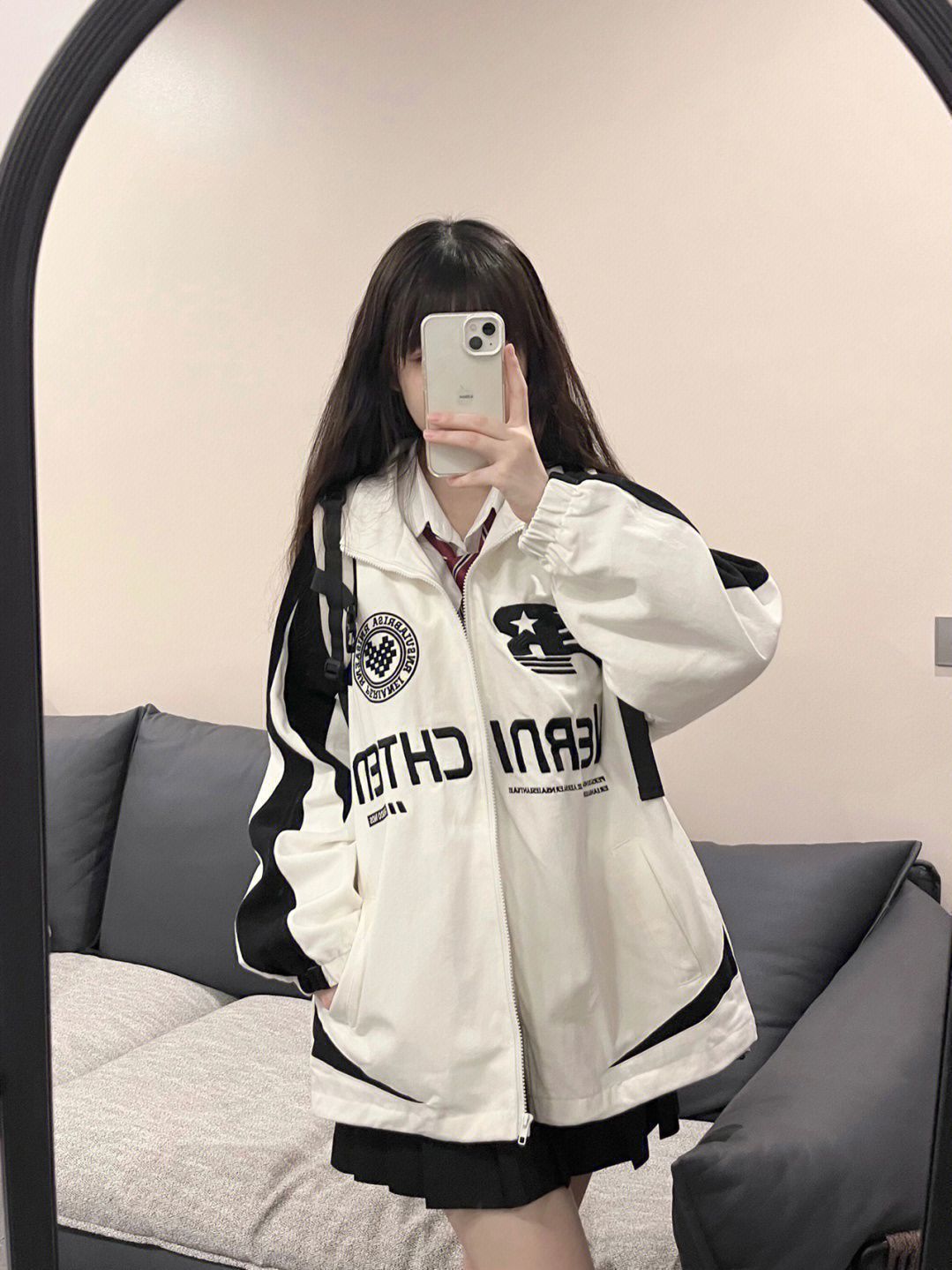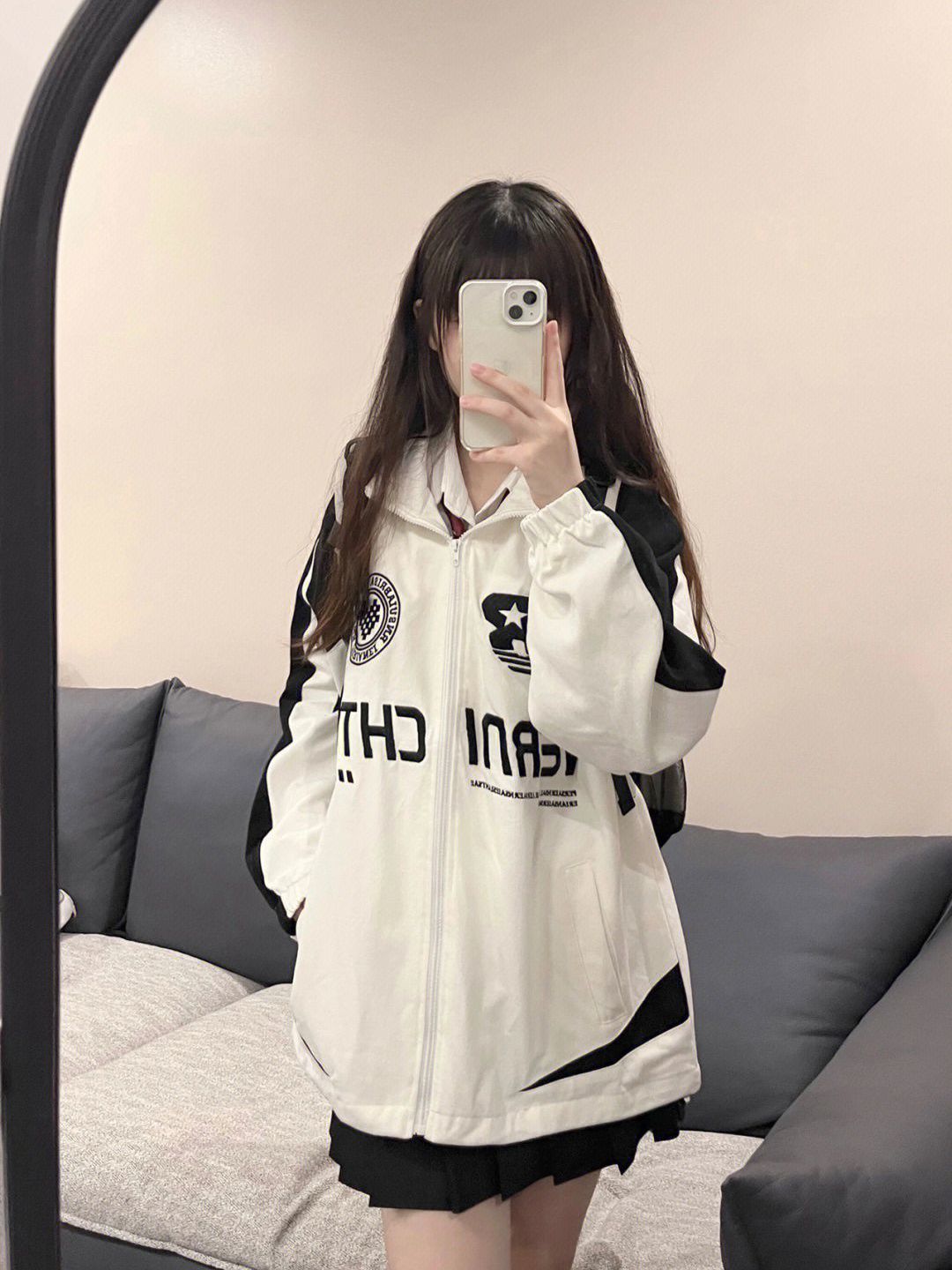 欧美高街hiphop机车棒球服外套女春秋国潮牌高街vintage复古夹克