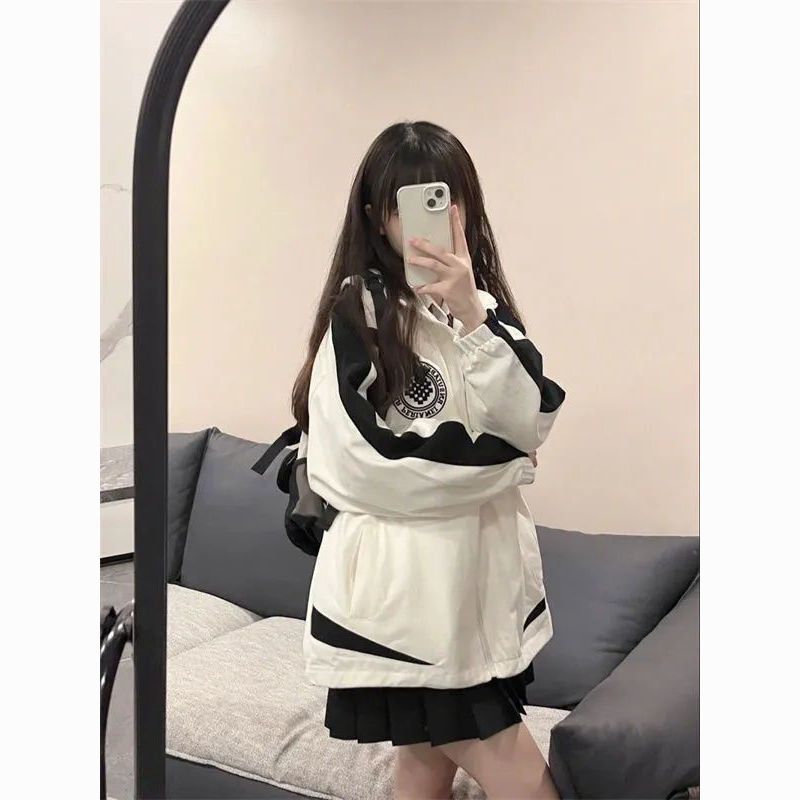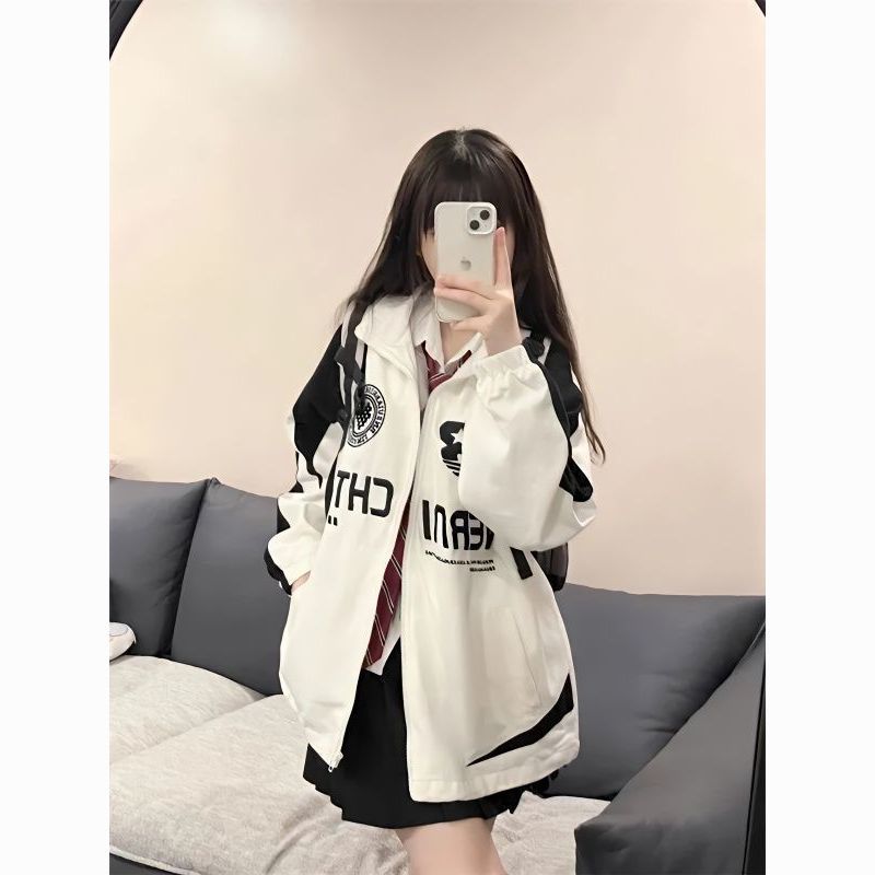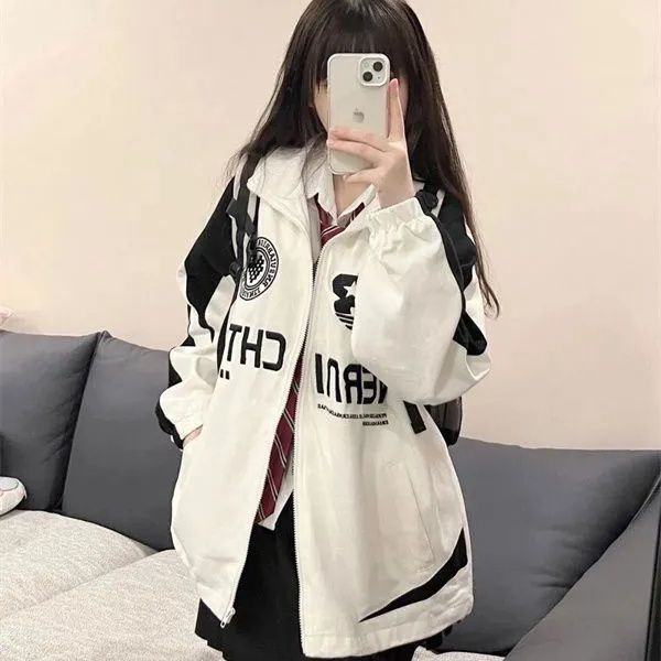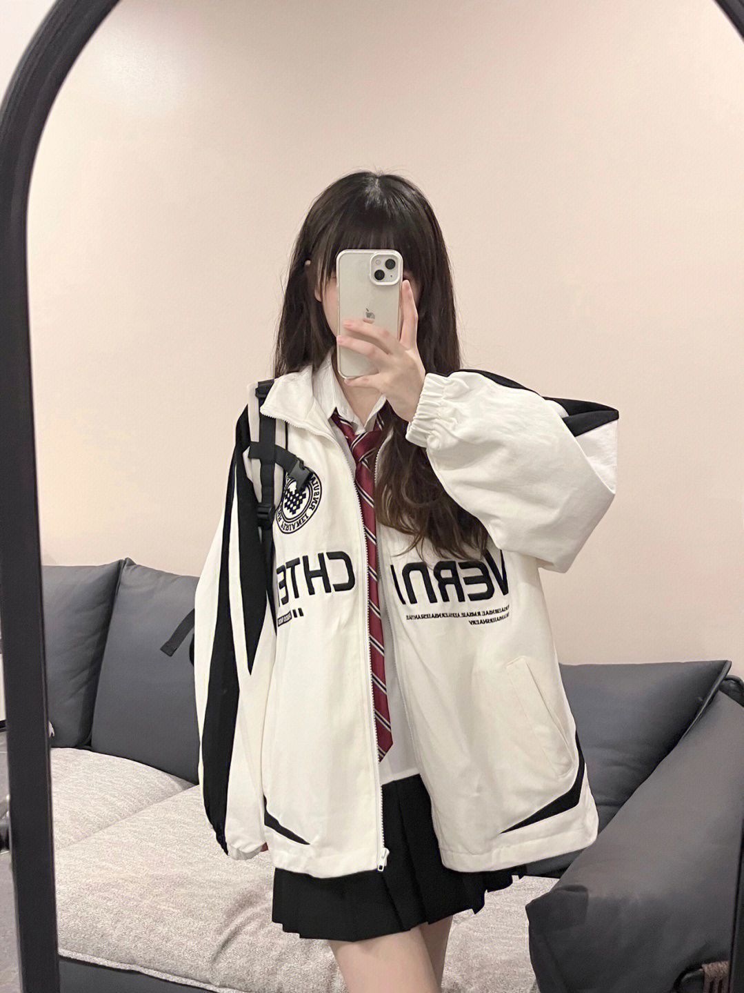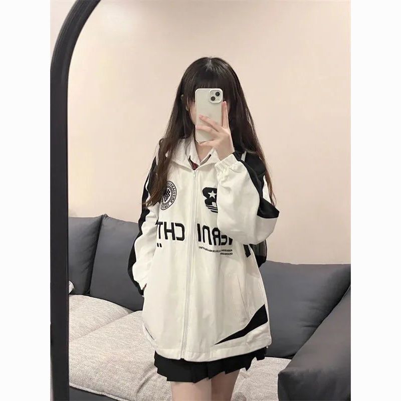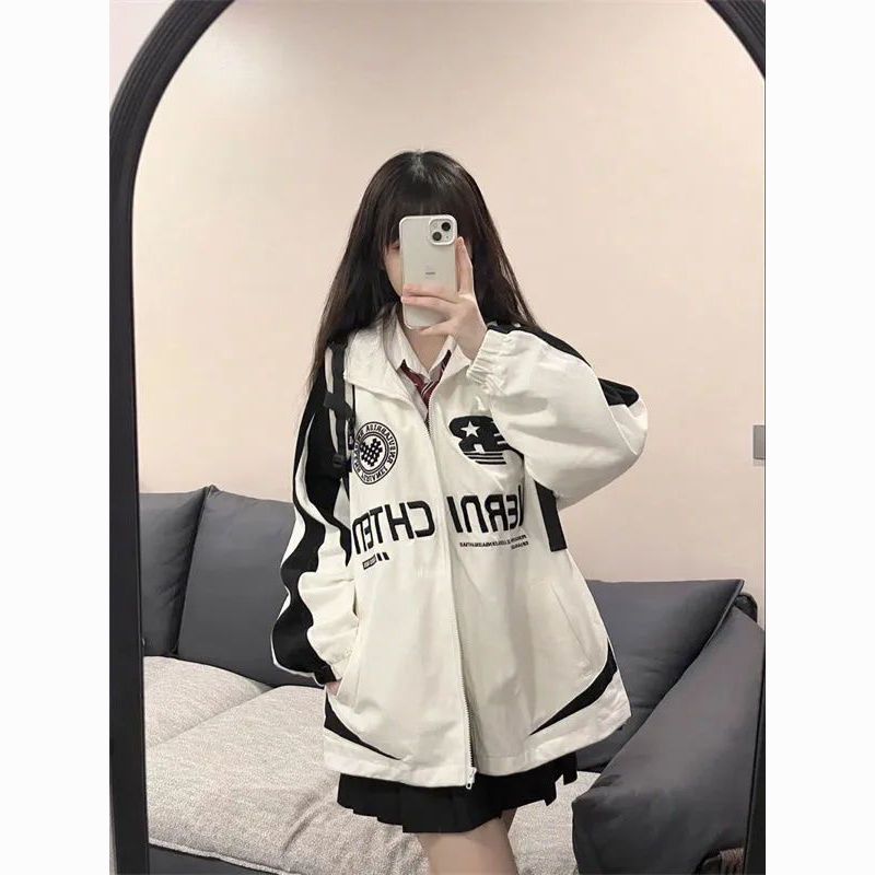 欧美高街hiphop机车棒球服外套女春秋国潮牌高街vintage复古夹克