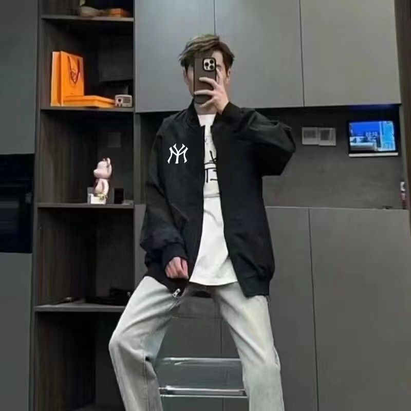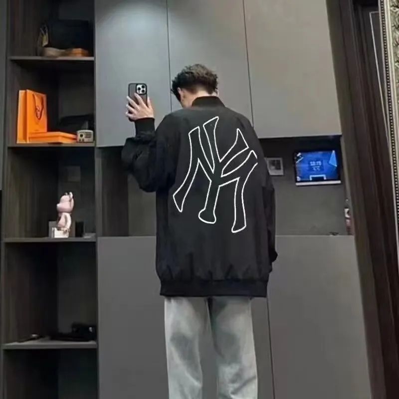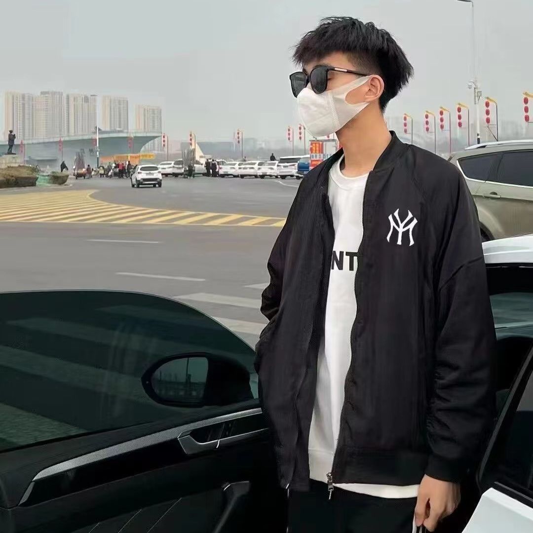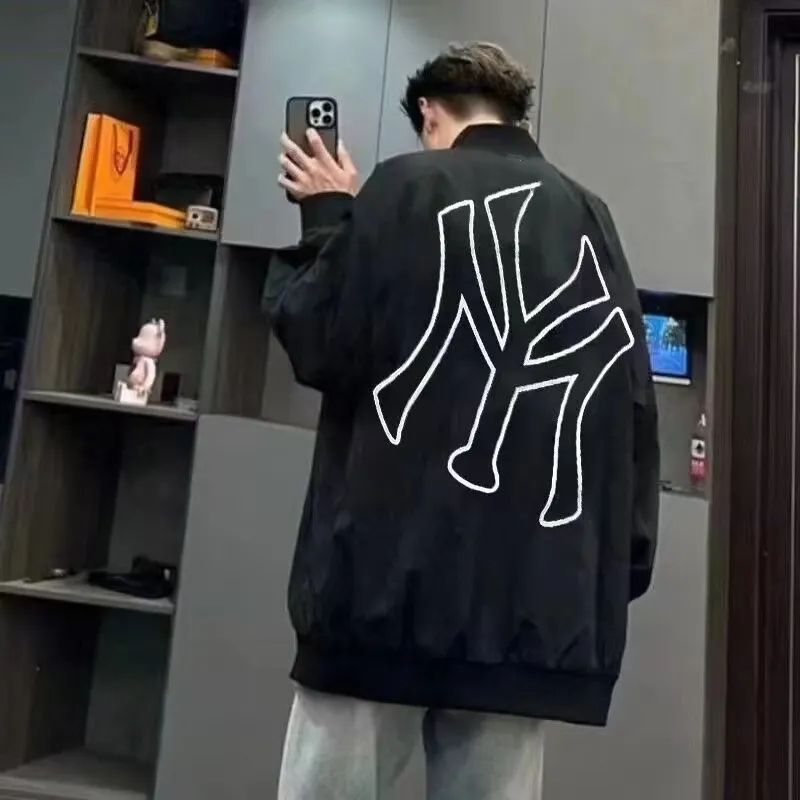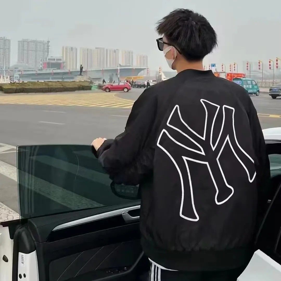 潮牌2025春秋款飞行员夹克男宽松字母印花美式棒球服休闲薄款外套