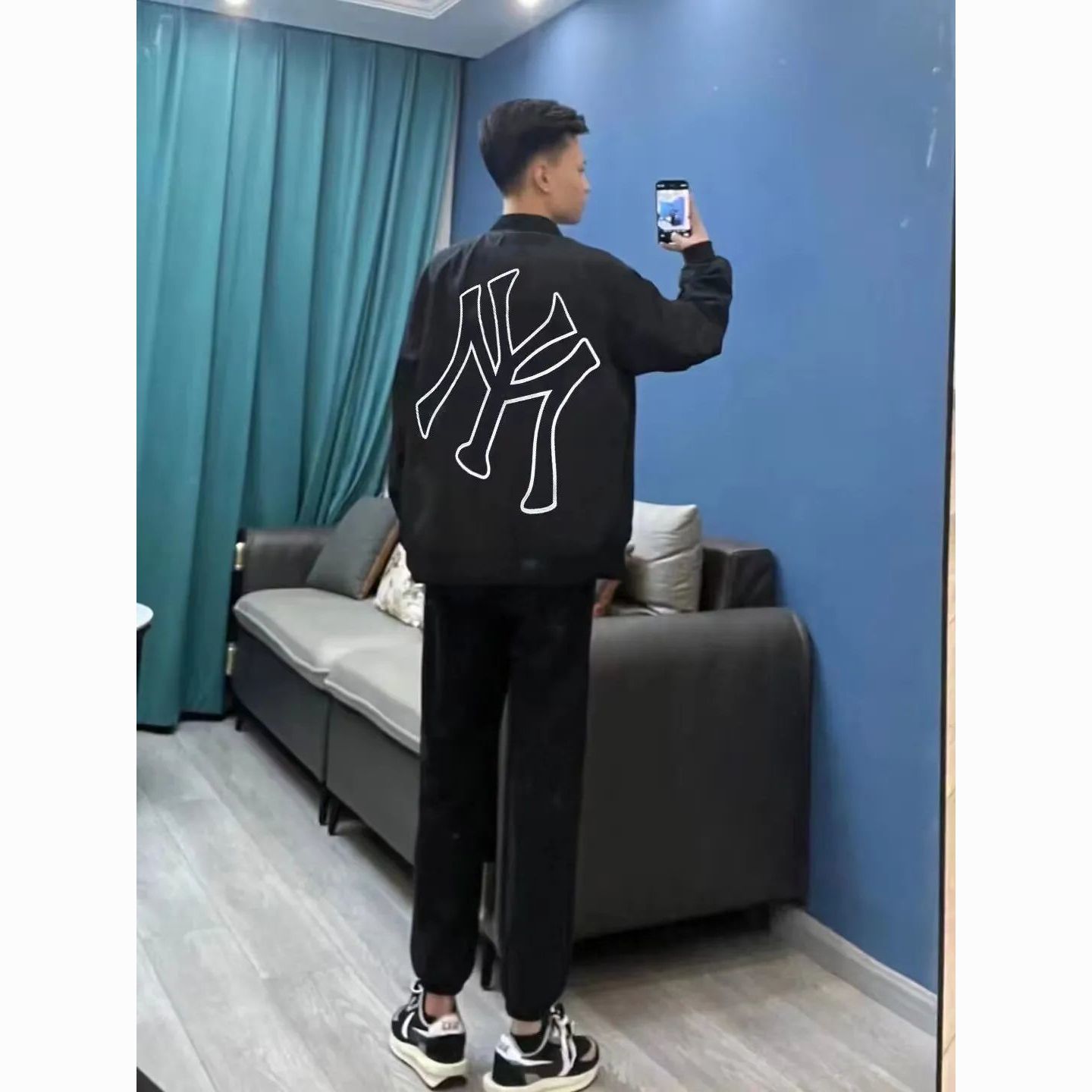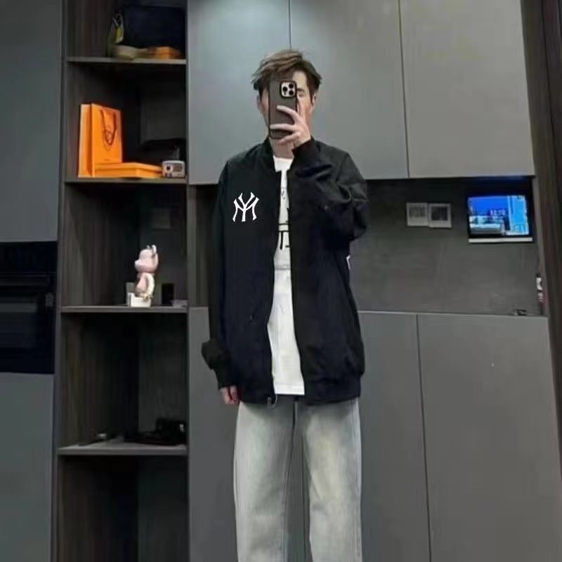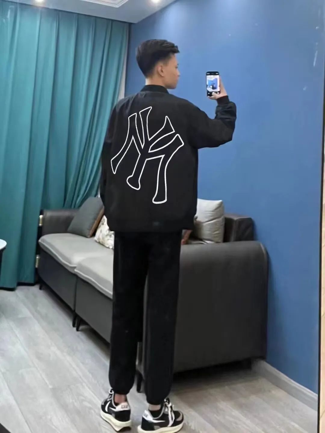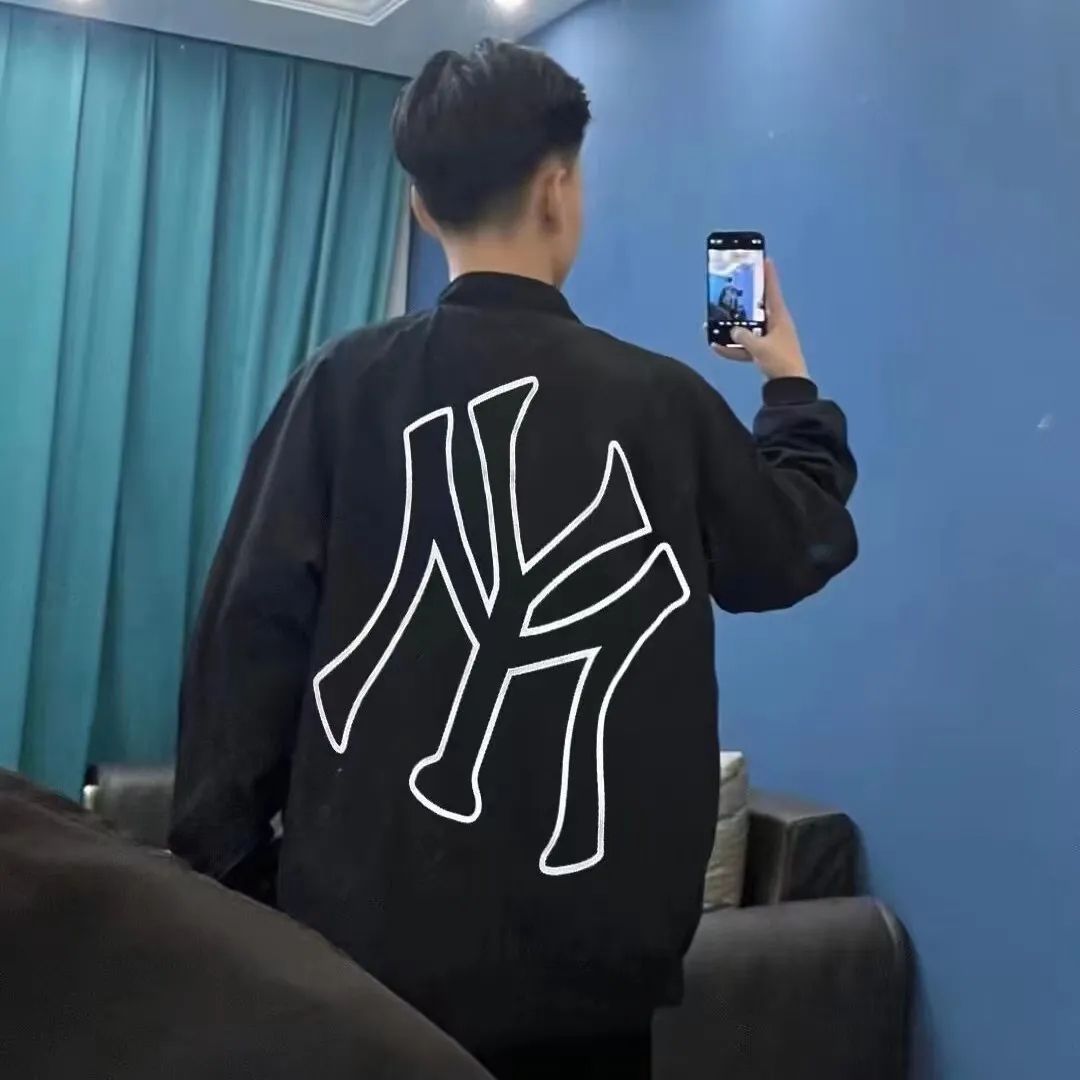 潮牌2025春秋款飞行员夹克男宽松字母印花美式棒球服休闲薄款外套