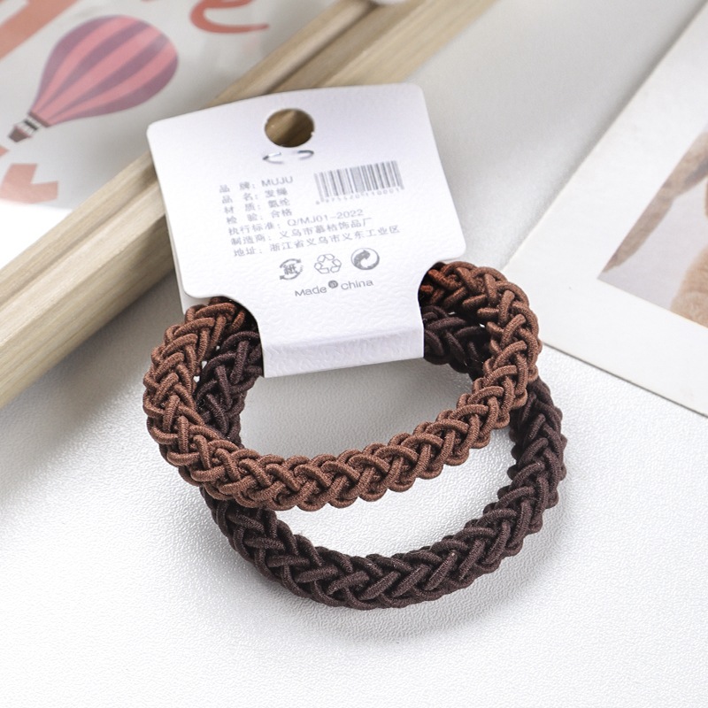 2条卡装发圈加粗高弹力编织头绳高级感麻花辫子发绳高马尾皮筋