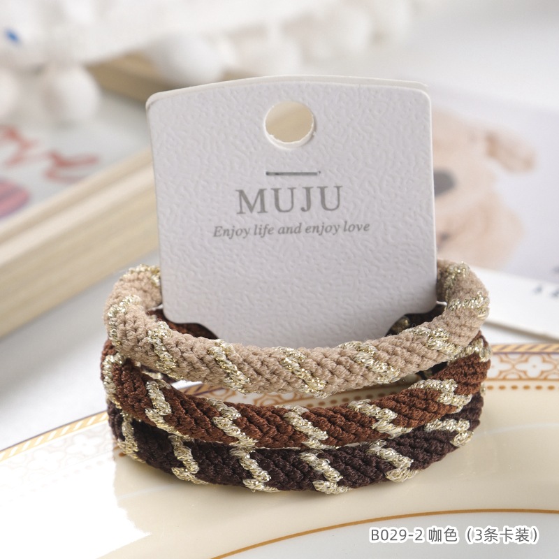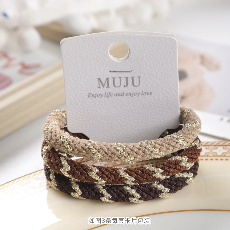 3条卡装皮筋加粗高弹力发圈金丝头绳发饰高马尾发绳