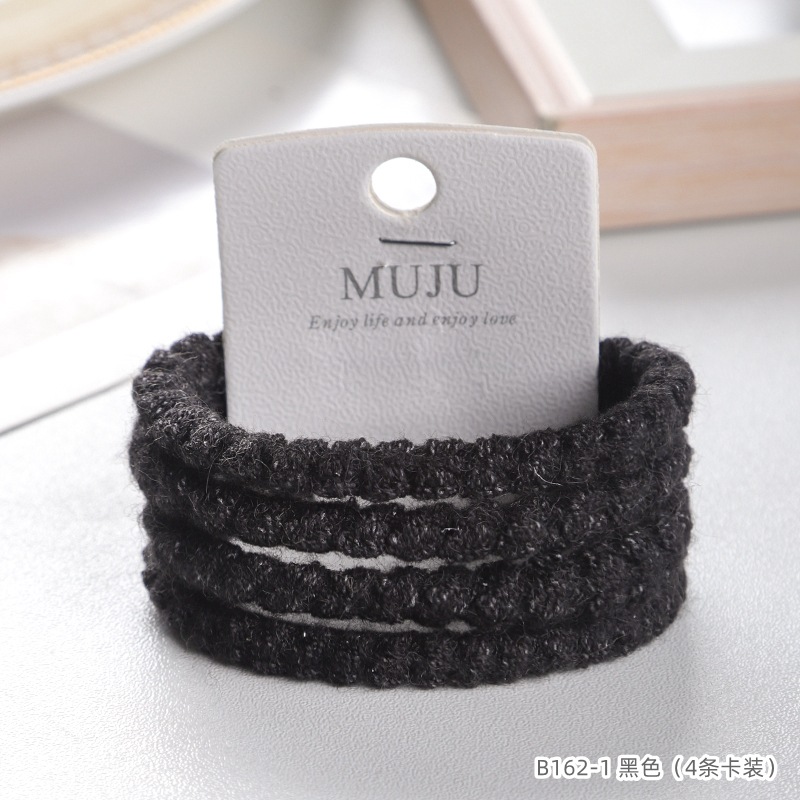 超值4条卡装皮筋简约毛绒发圈高弹力绑马尾头绳条形码发饰发绳