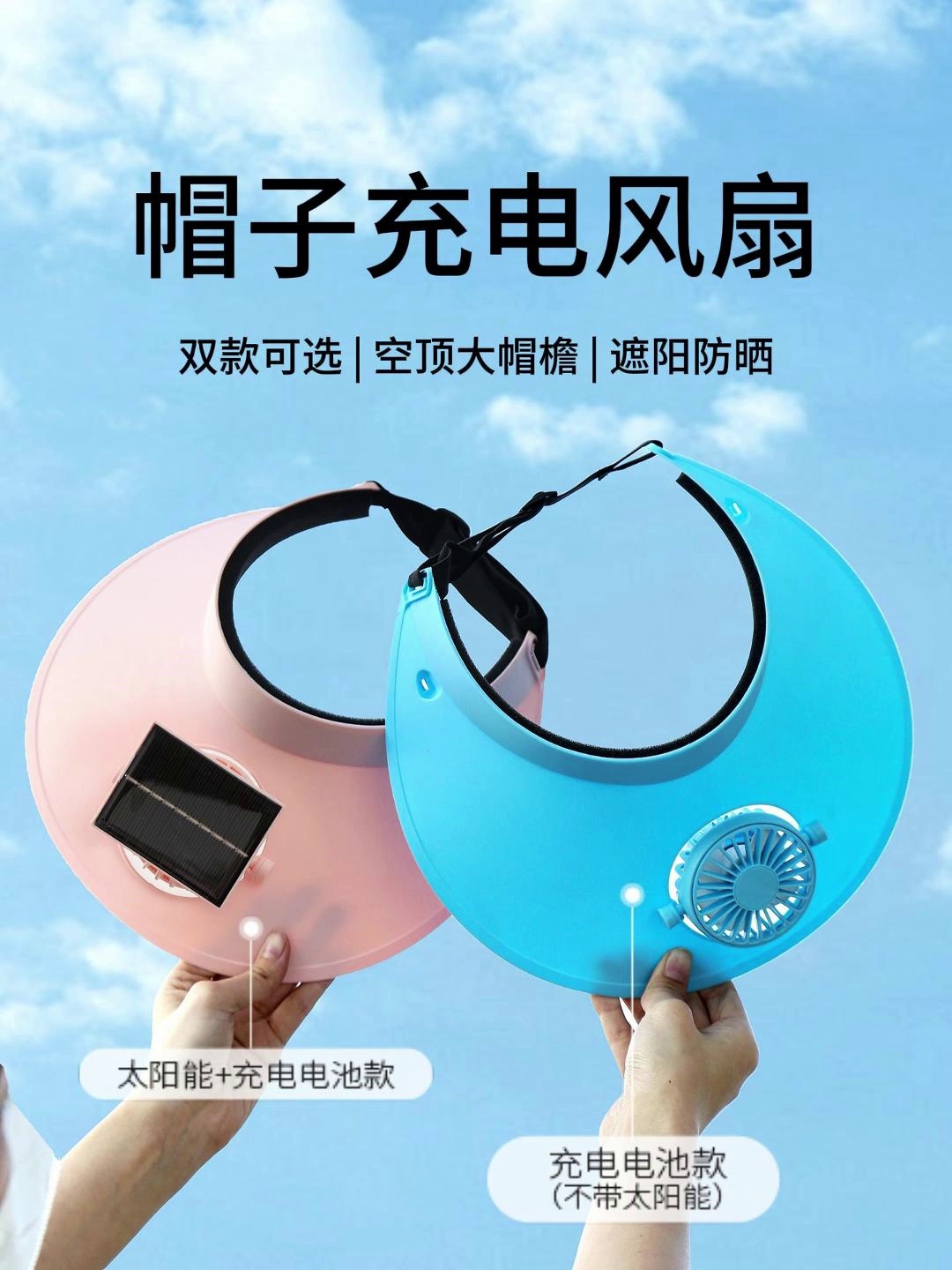 2025新款太阳能风扇帽子USB充电便携夏季外出遮阳帽