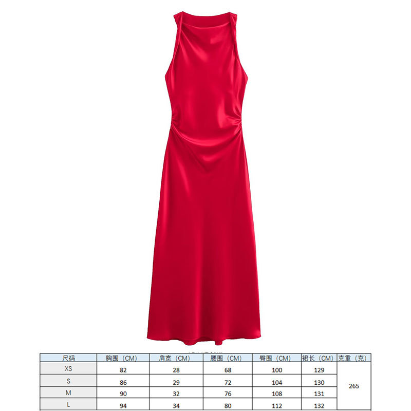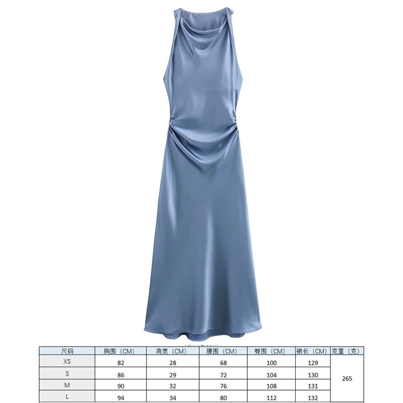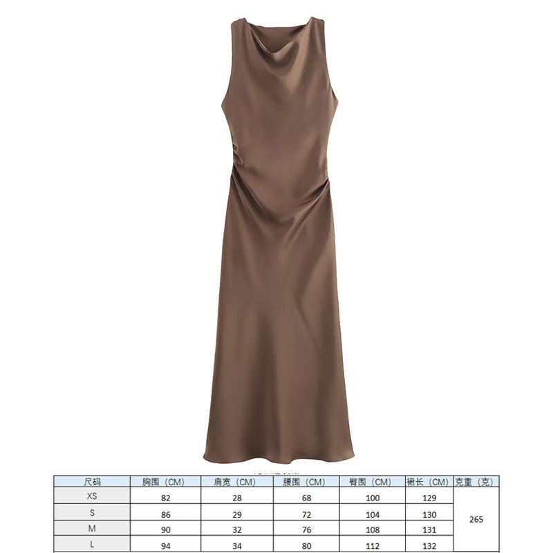 外贸速卖通2024春季欧美时尚迷笛连衣裙圆领无袖黑色丝缎质感长裙