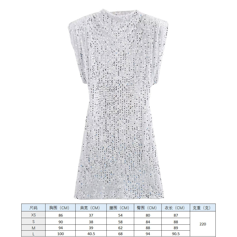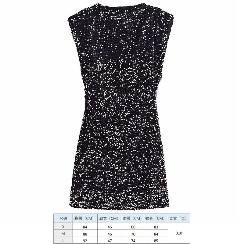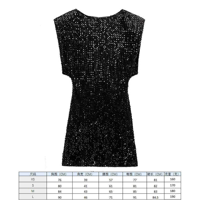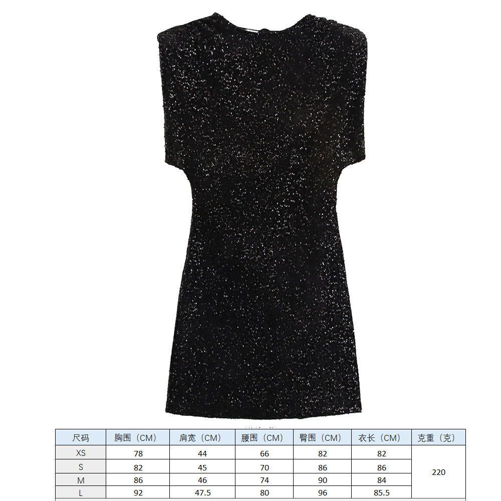 外贸聚会装跨境2023节日礼服Y2K无袖黑裙带垫肩珠片饰迷你连衣裙
