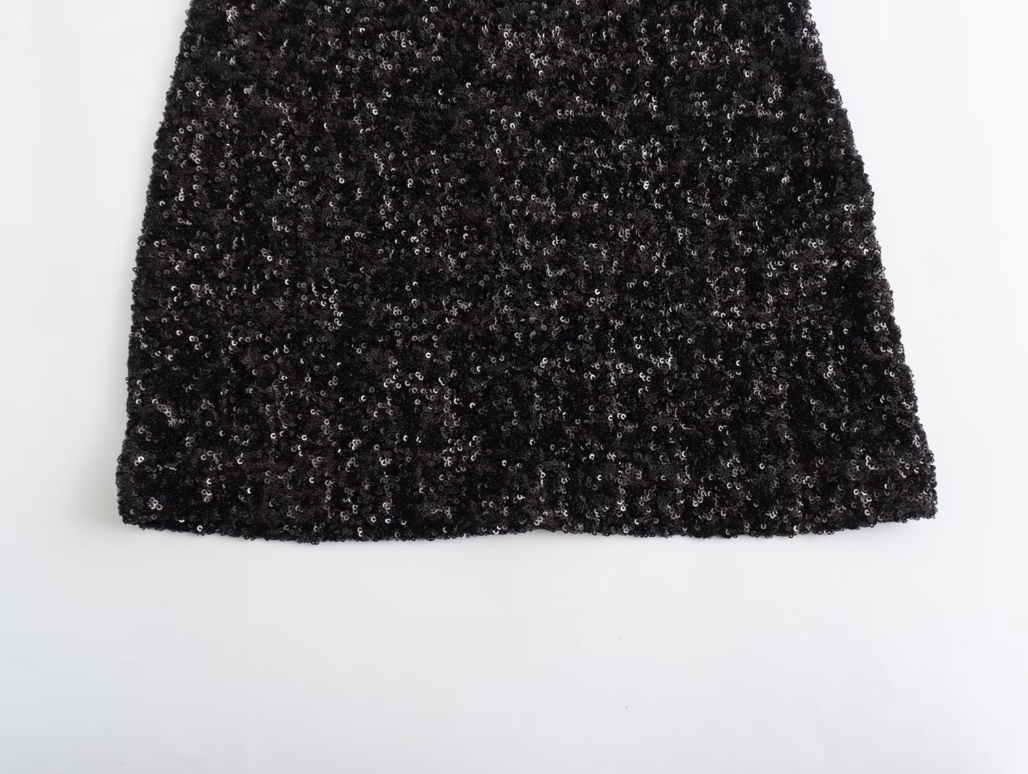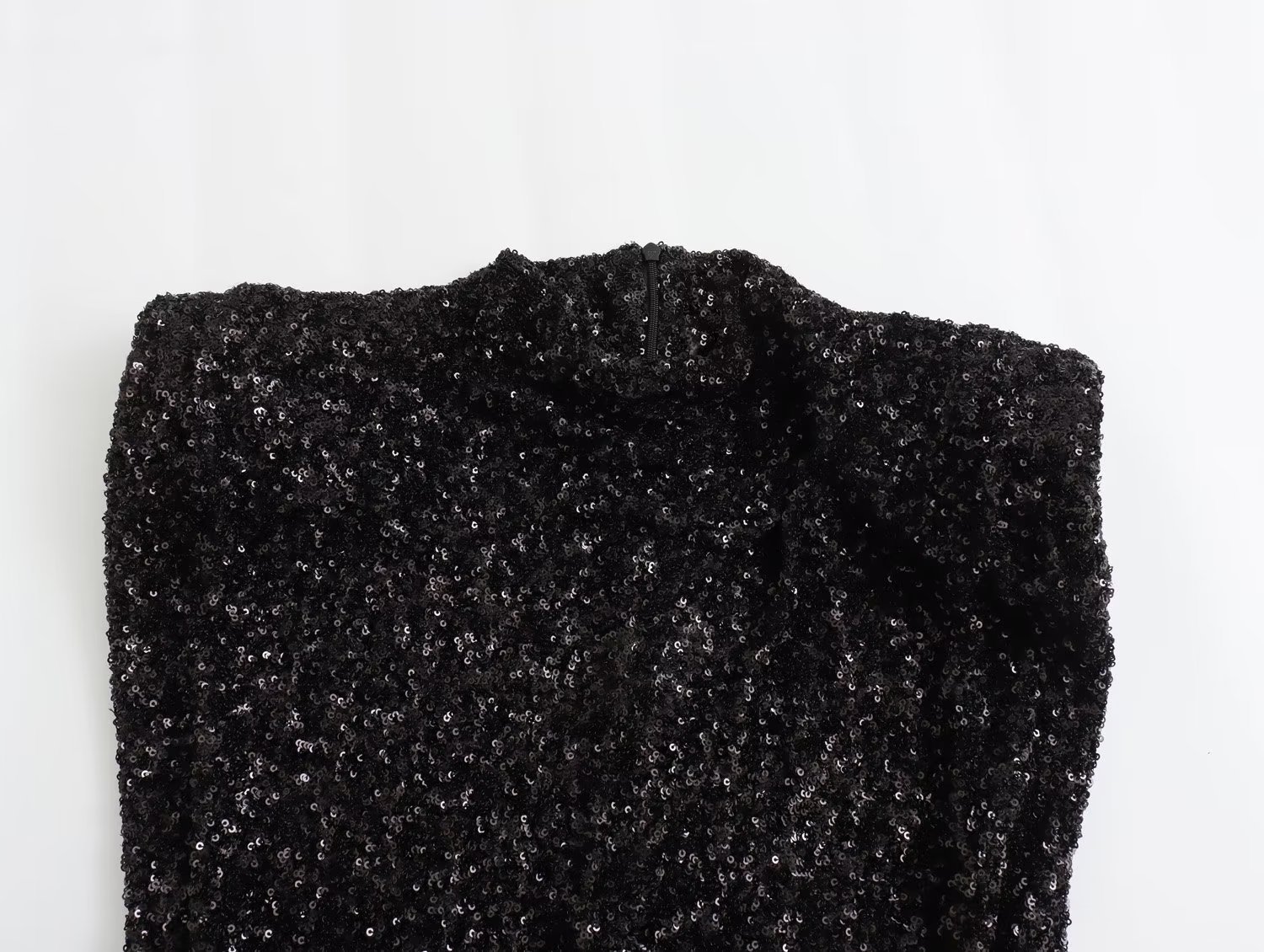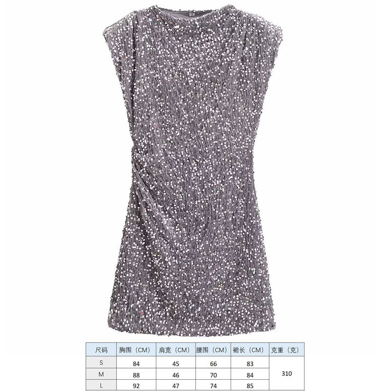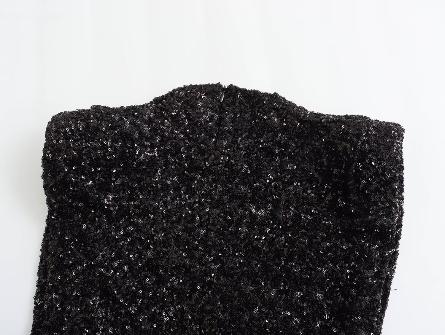 外贸聚会装跨境2023节日礼服Y2K无袖黑裙带垫肩珠片饰迷你连衣裙