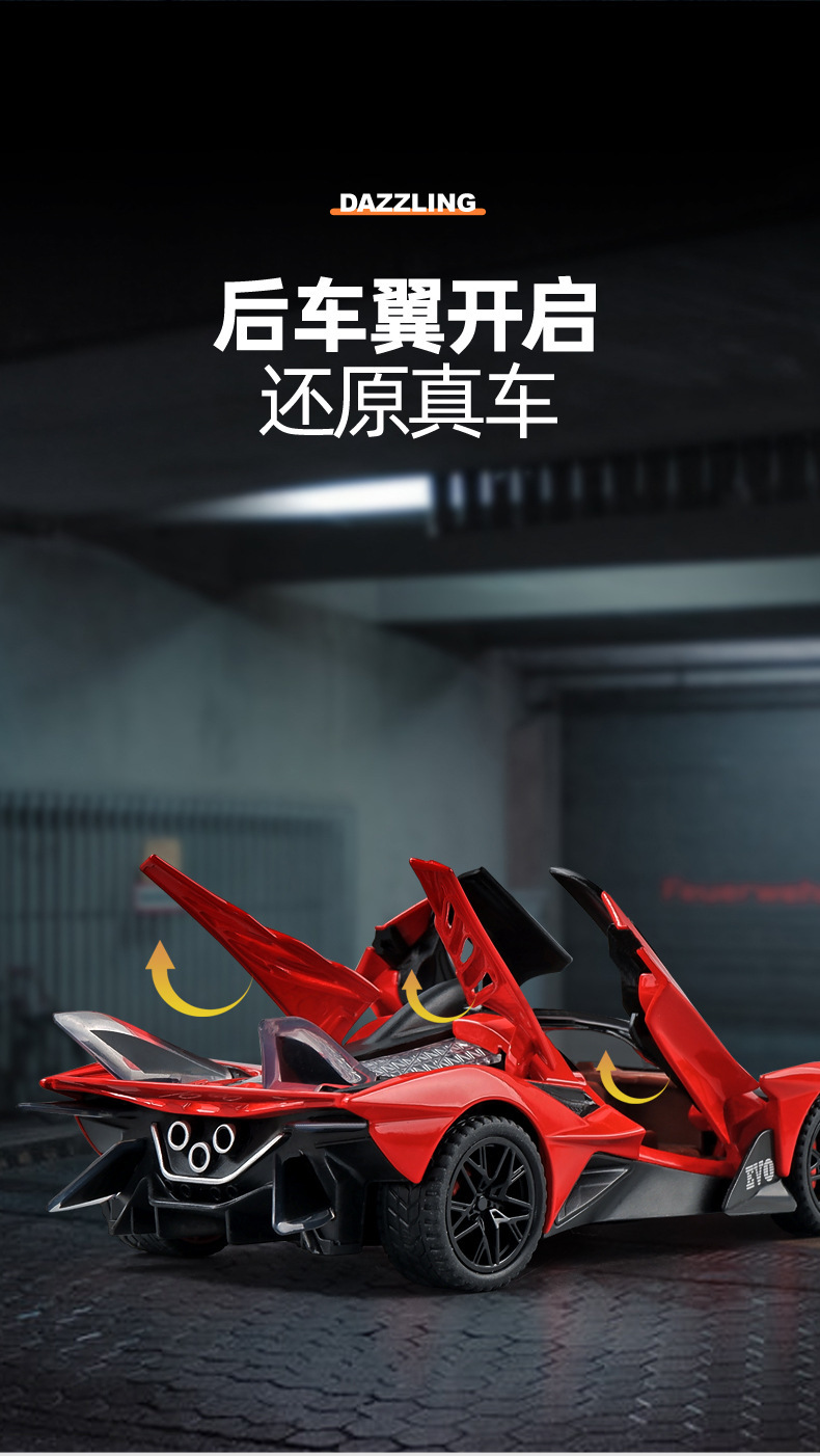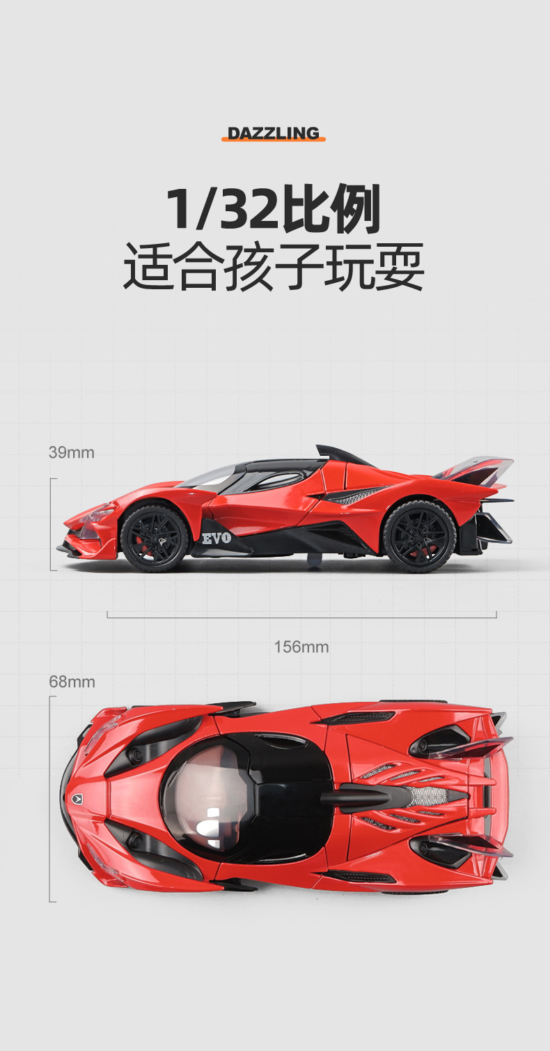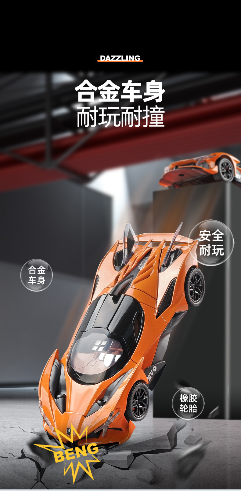 利佳信1:32合金阿波罗太阳神跑车仿真声光儿童汽车模型摆件玩具