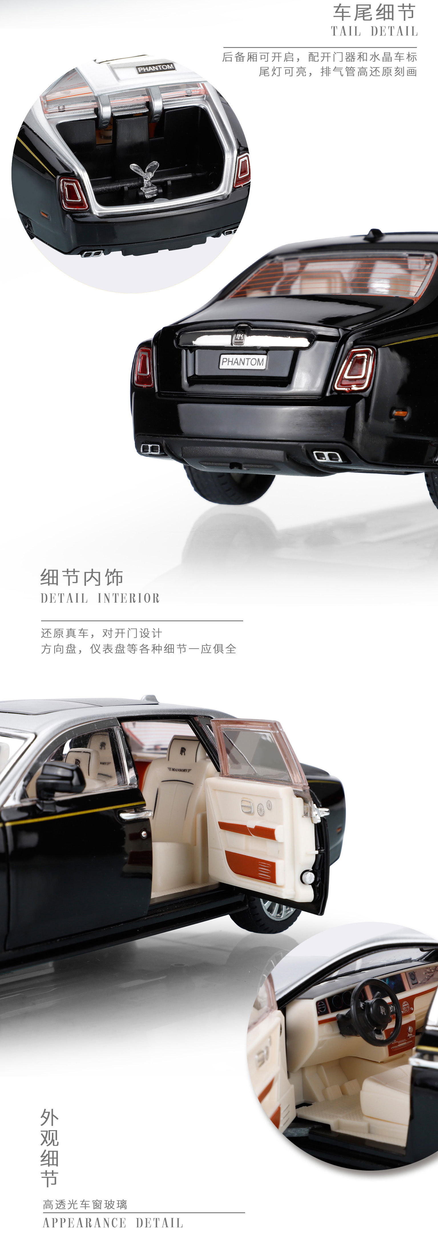 大号幻影1:24玩具车摆件合金车模仿真汽车模型男孩礼物玩具批发