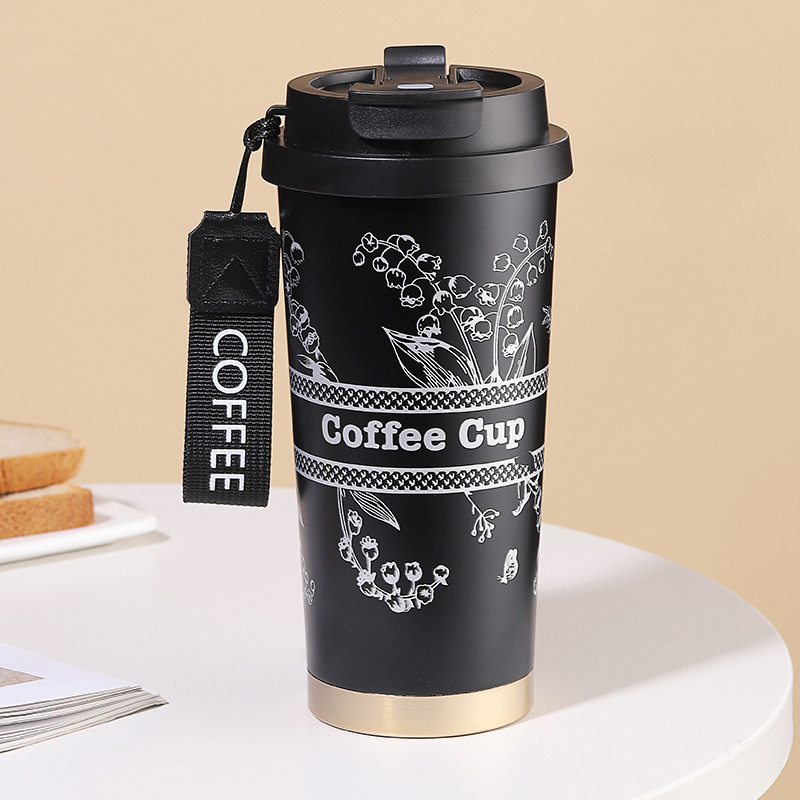 高颜值铃兰花咖啡杯女316不锈钢吸管保温杯真空便携水杯批发家用