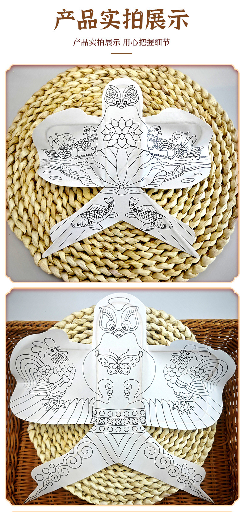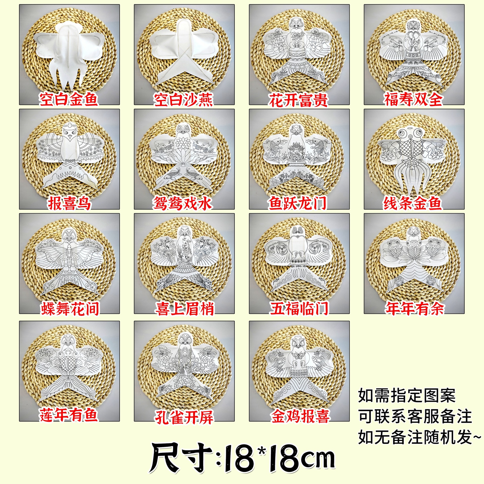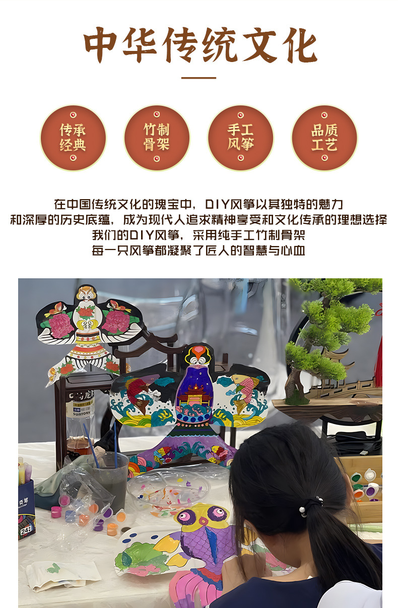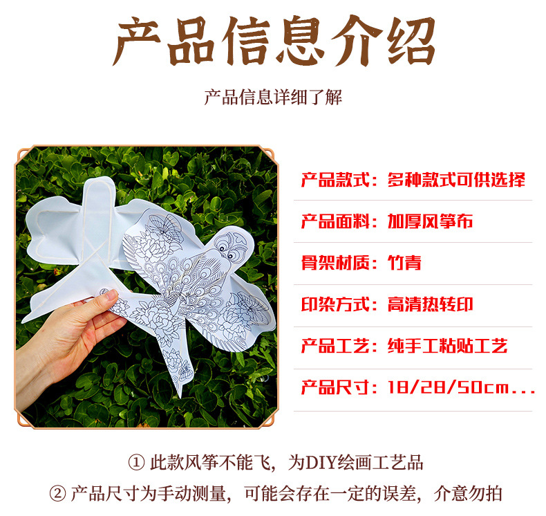 纸鸢风筝diy手工制作材料包 填色小纸风筝摆件装挂饰传统空白风筝
