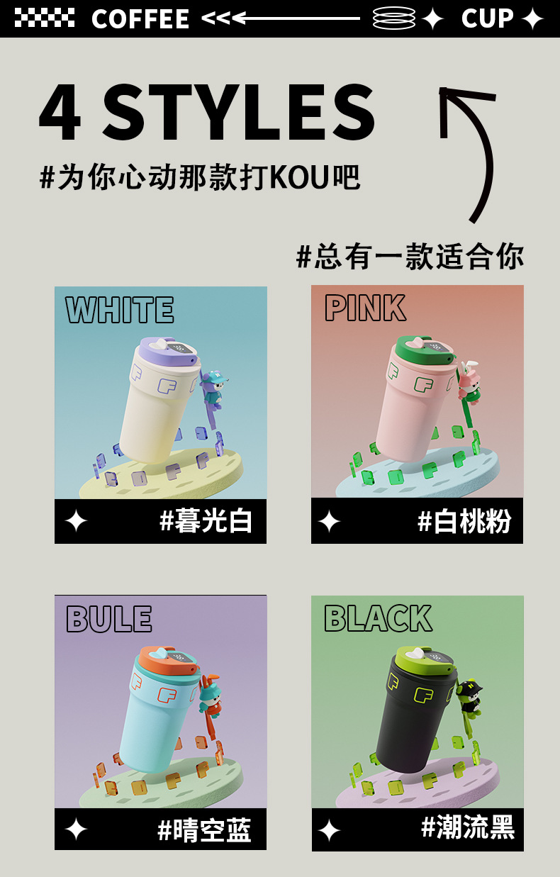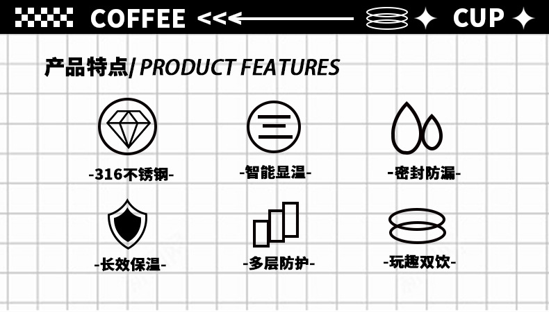 一件代发316不锈钢咖啡杯双饮显温保温杯高颜值水杯礼品杯子批发