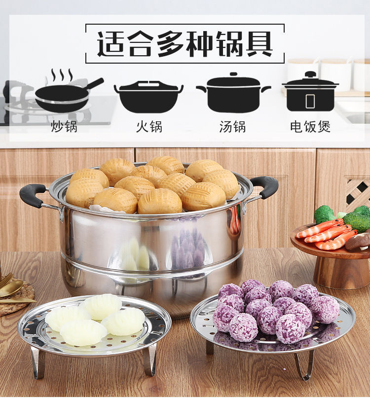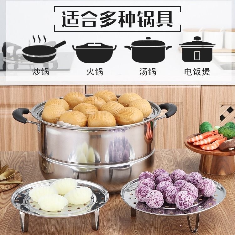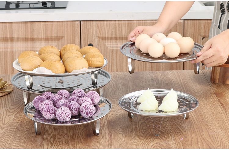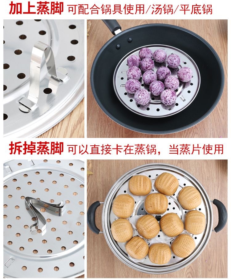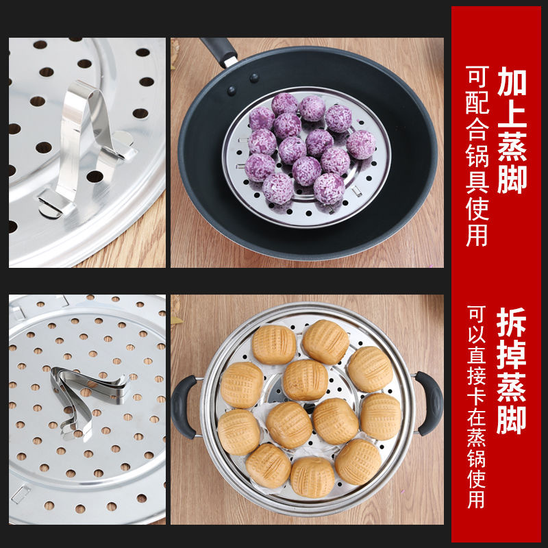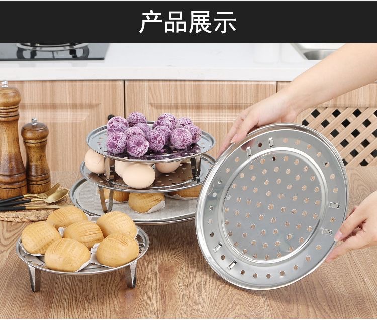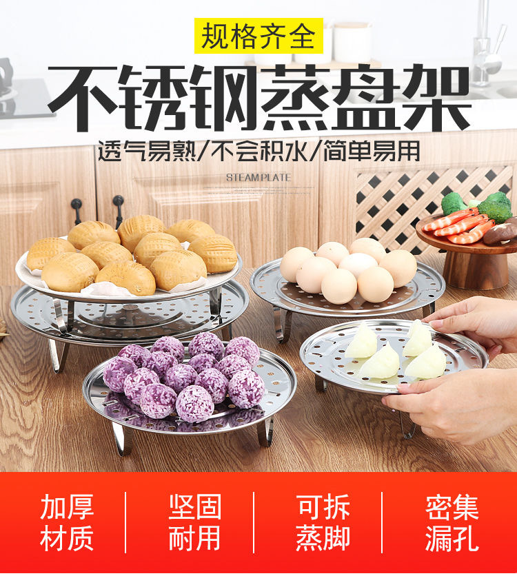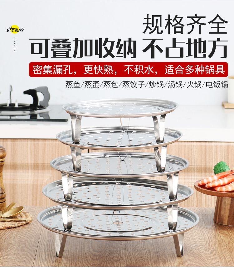 不锈钢蒸笼蒸盘隔水蒸屉蒸架锅篦子家用蒸格厨房蒸面包馒头带脚架