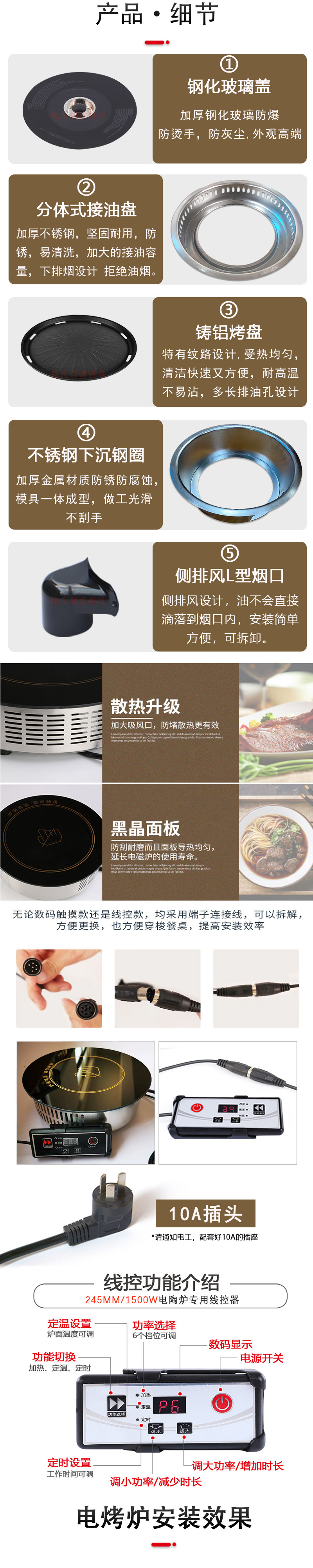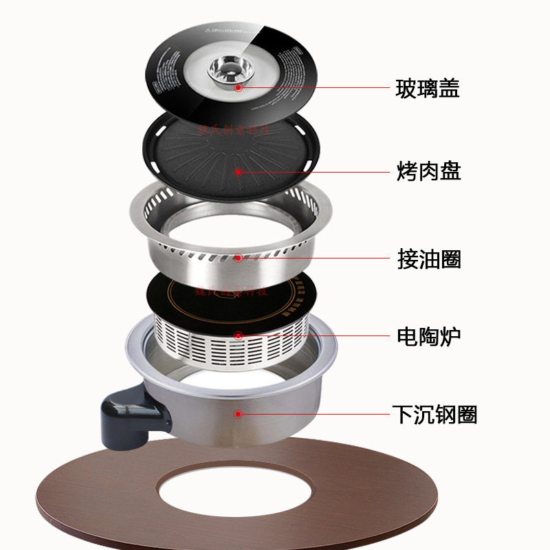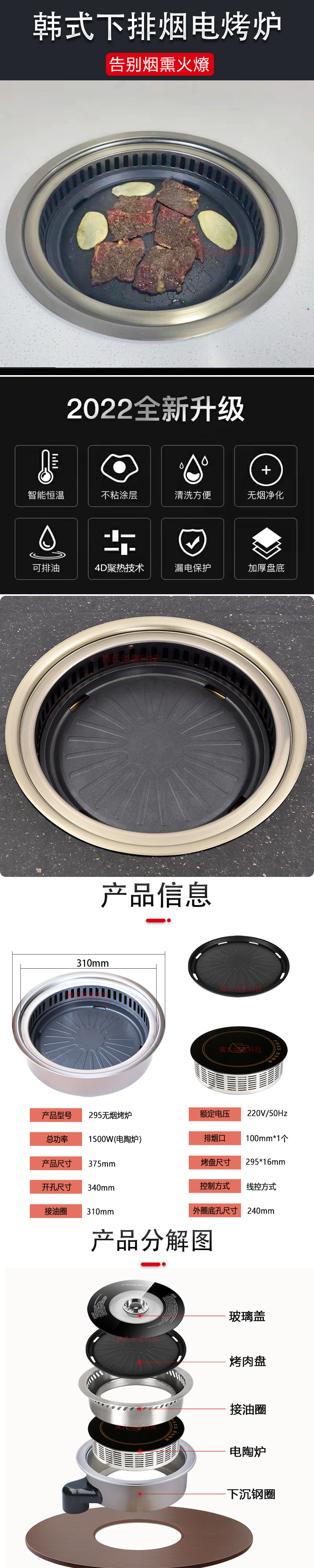 无烟电烧烤炉餐厅韩式无烟电烤炉下排烟圆形嵌入式烧烤炉商用