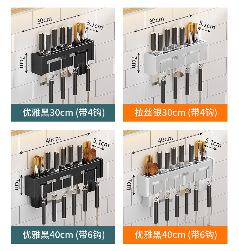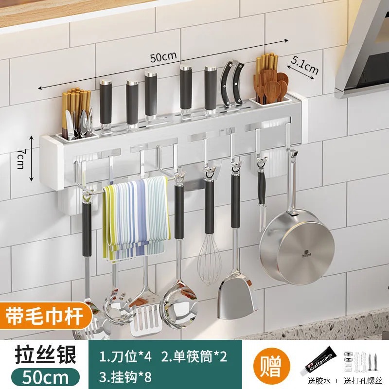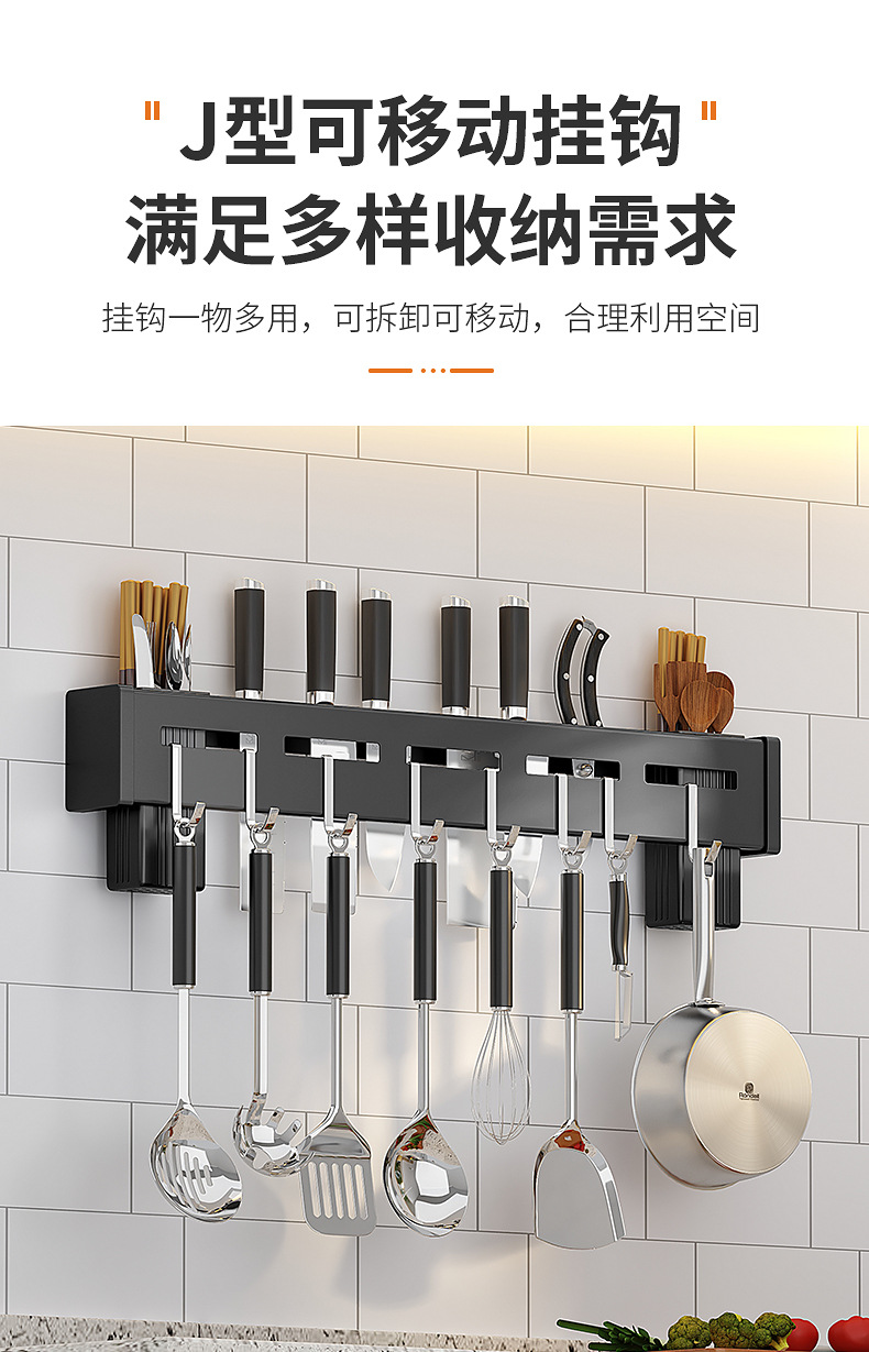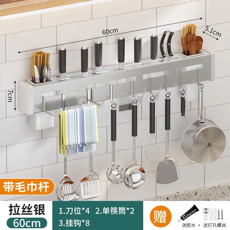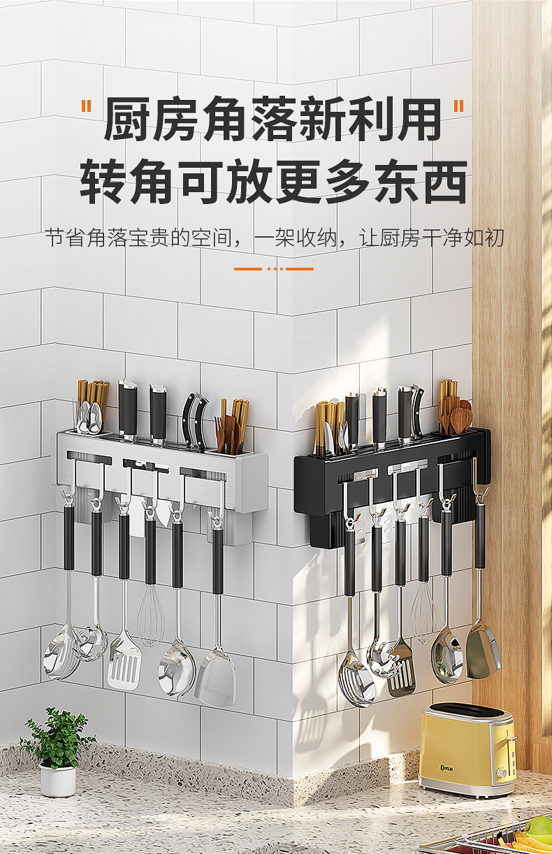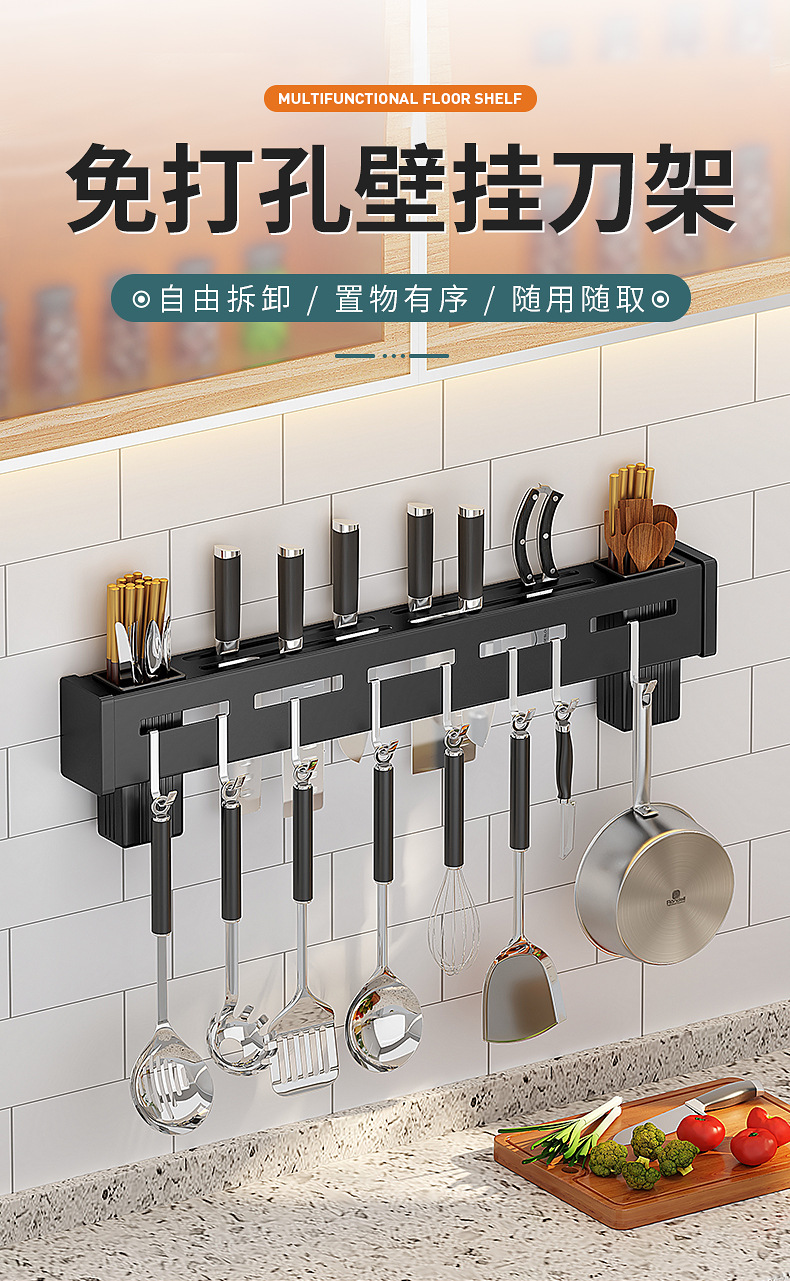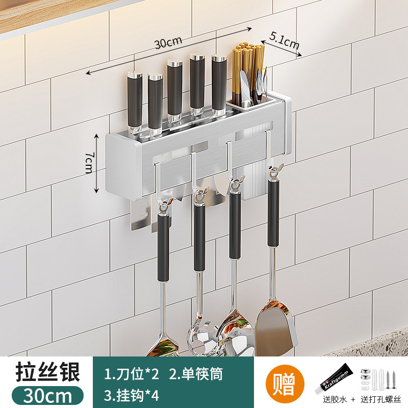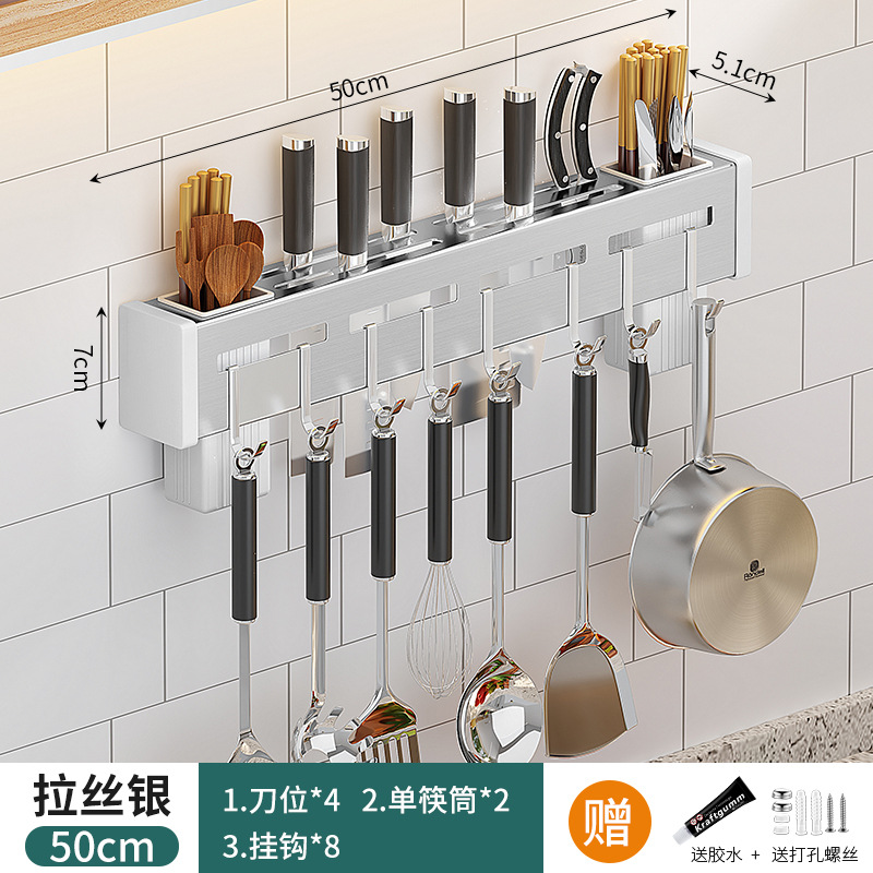 不锈钢刀架厨房免打孔壁挂置物架筷子家用多功能挂钩刀具储物架