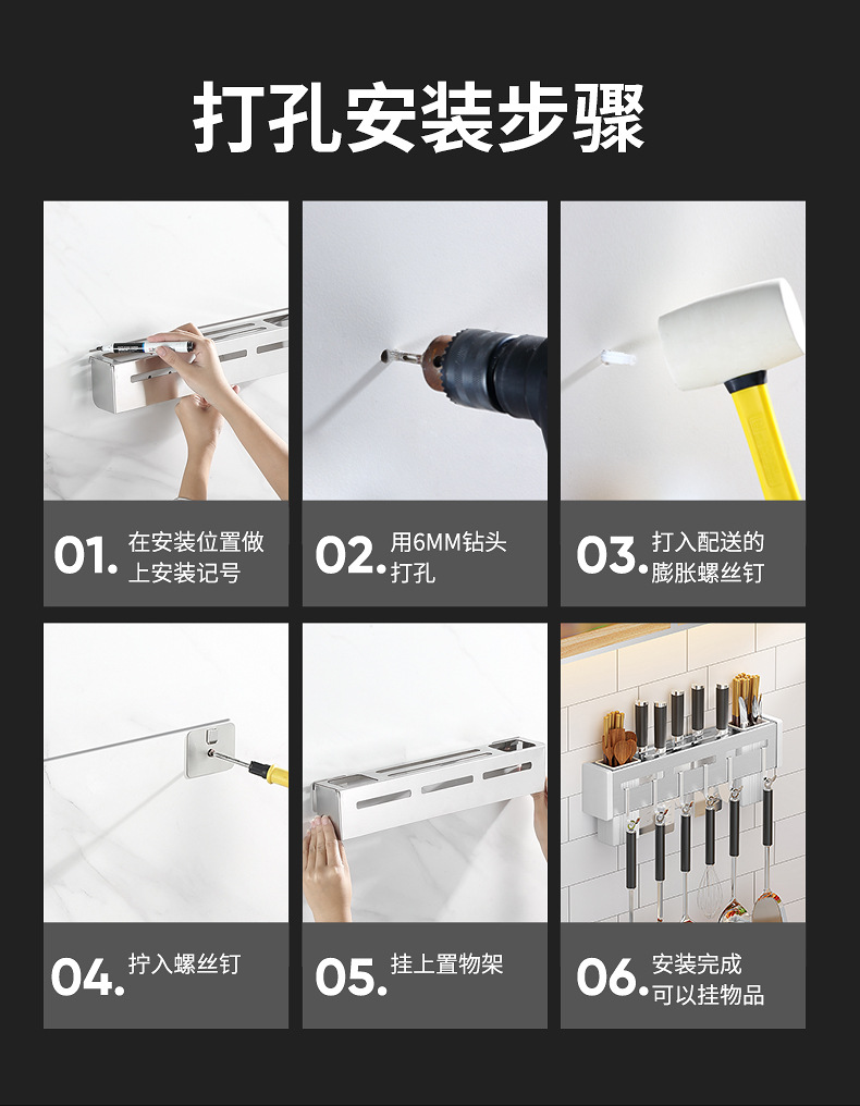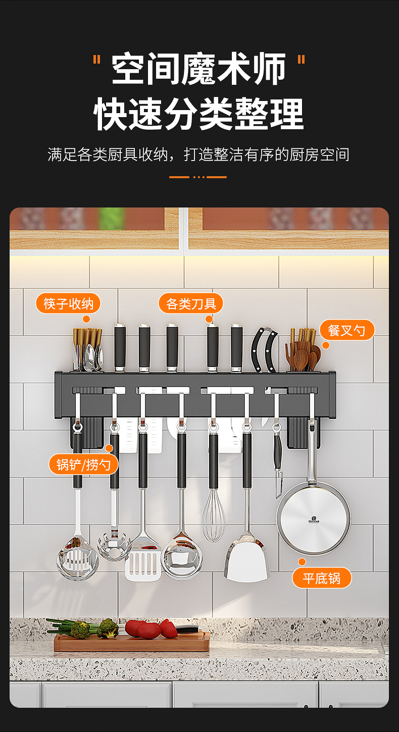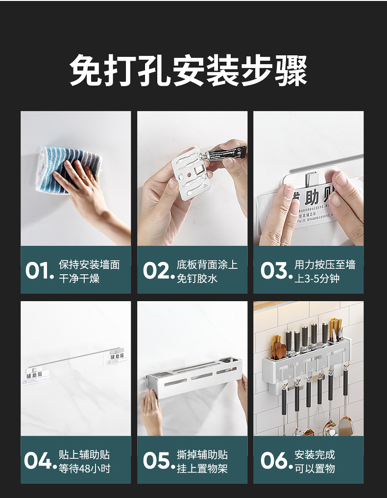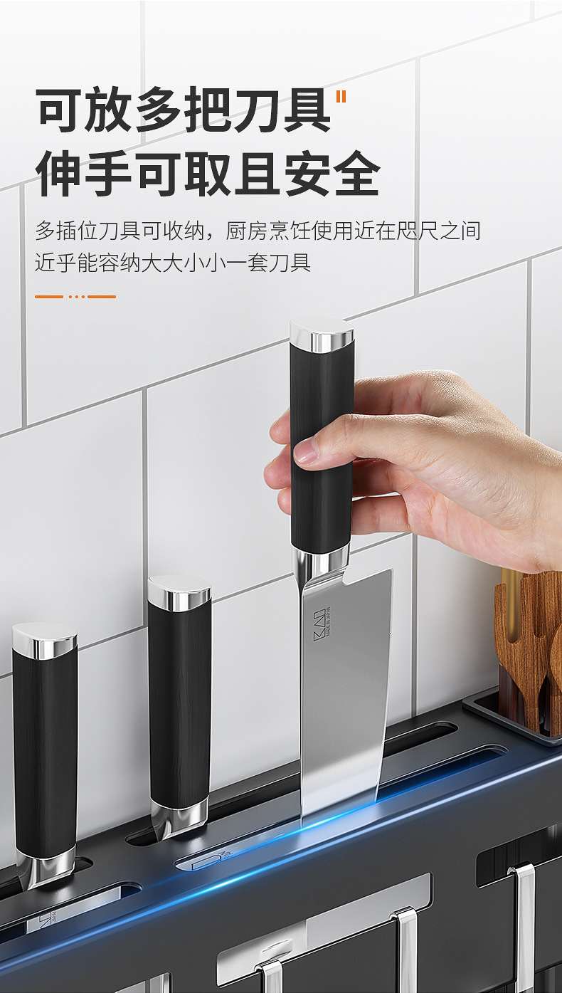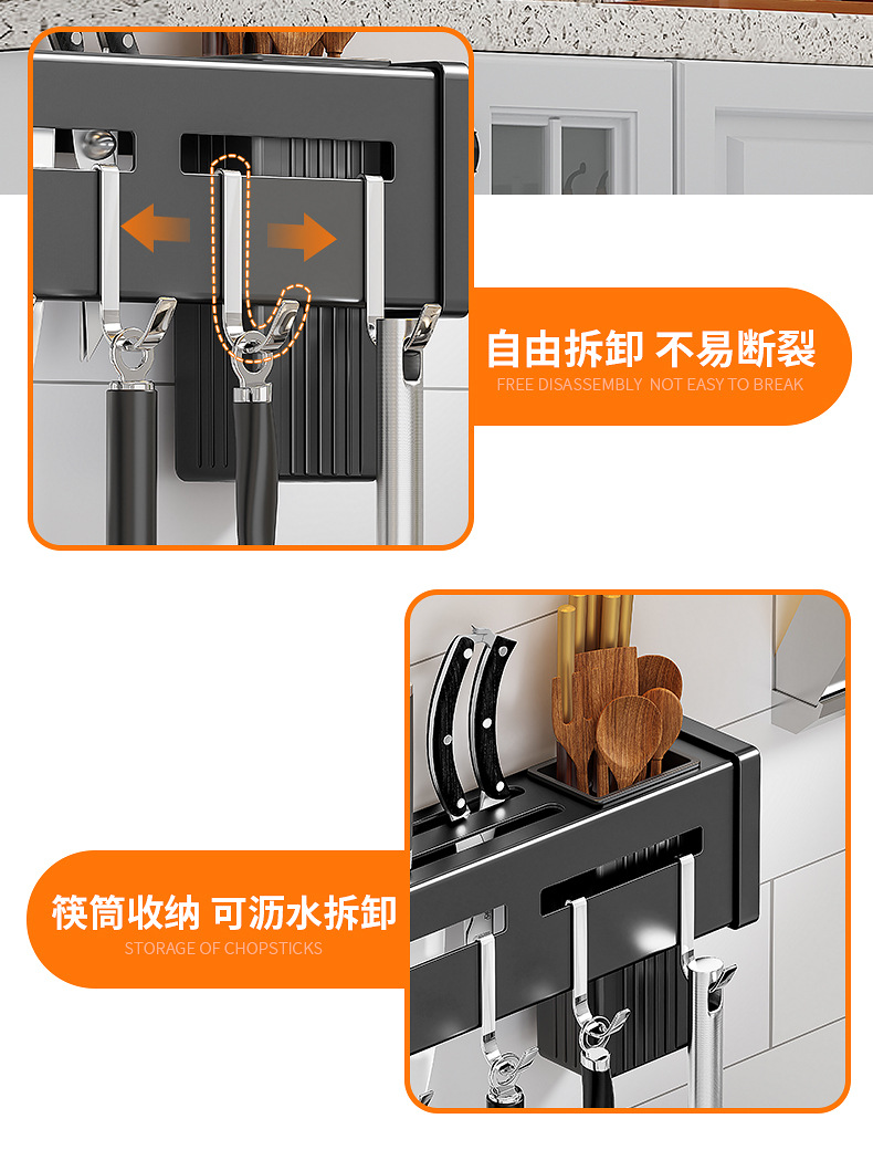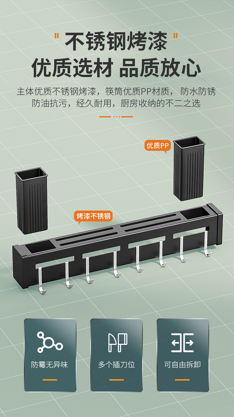 不锈钢刀架厨房免打孔壁挂置物架筷子家用多功能挂钩刀具储物架