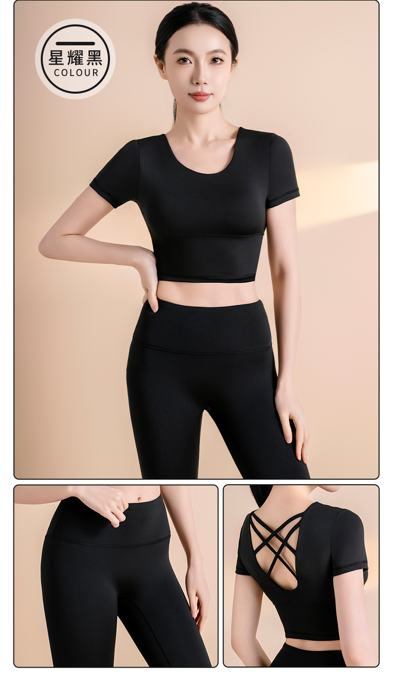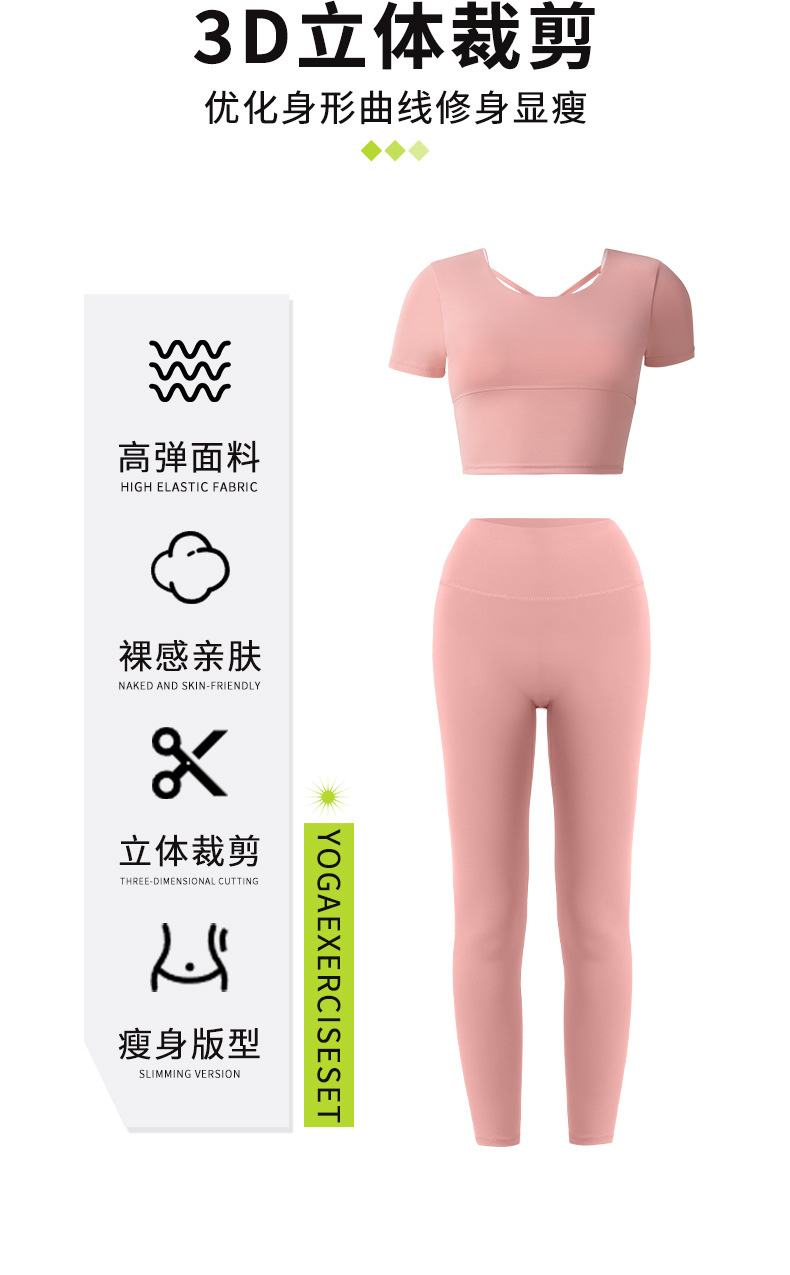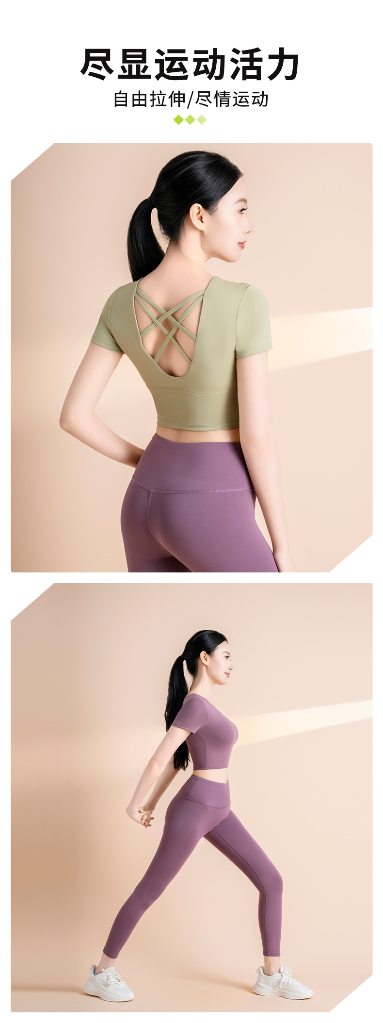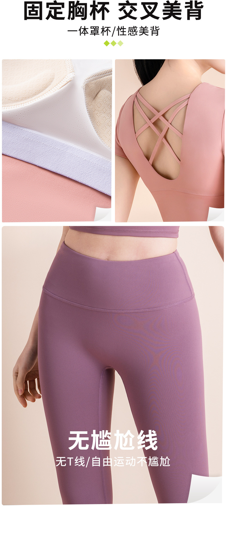 交叉美背瑜伽服套装显瘦吸湿速干运动健身裤上衣裸感一体式胸垫女