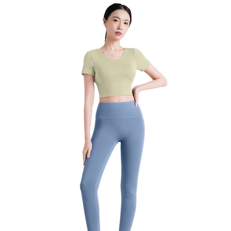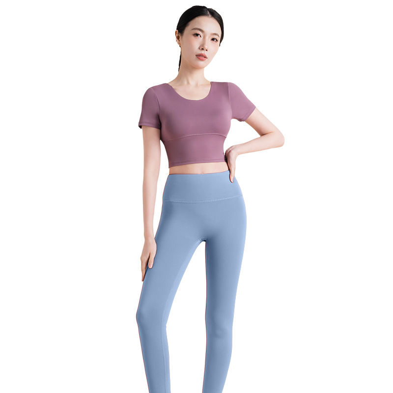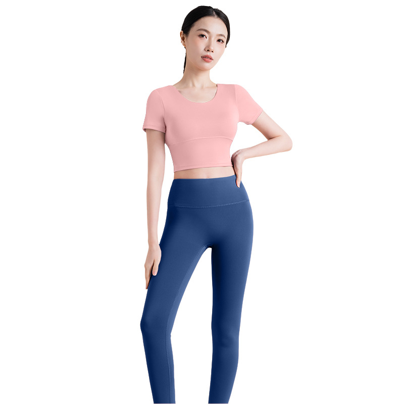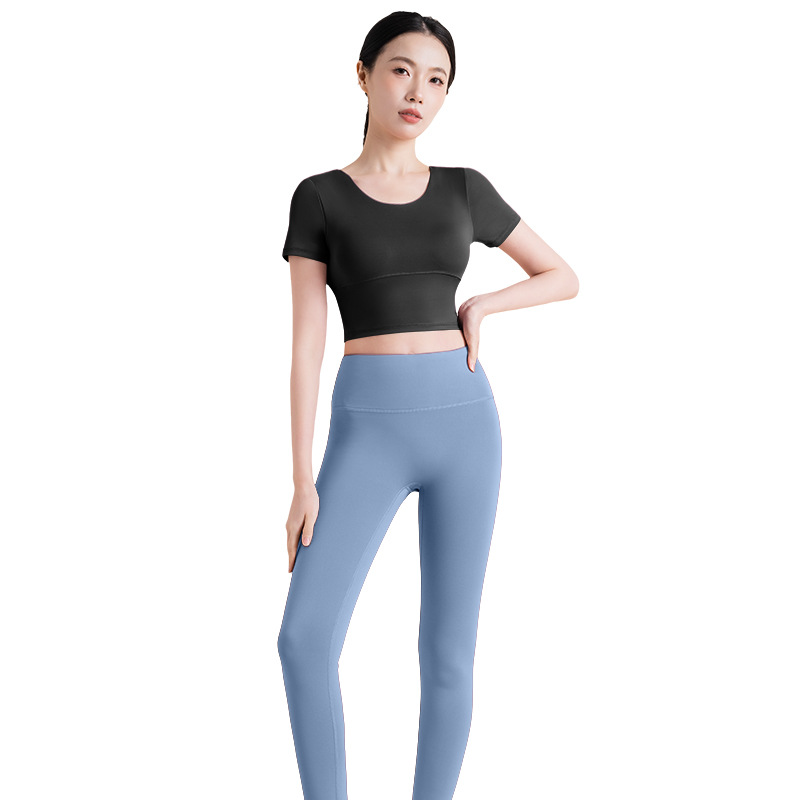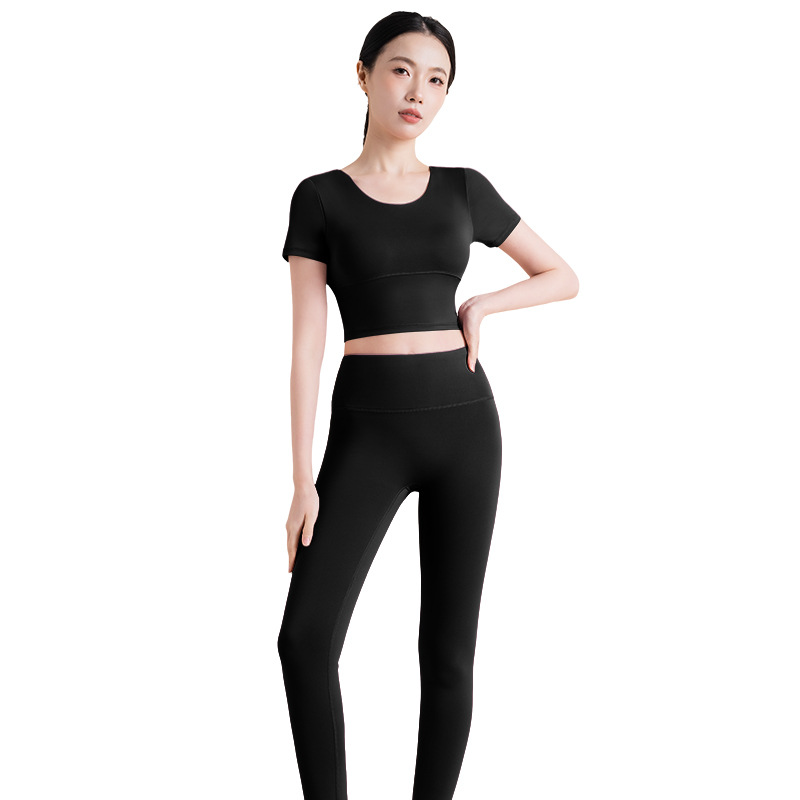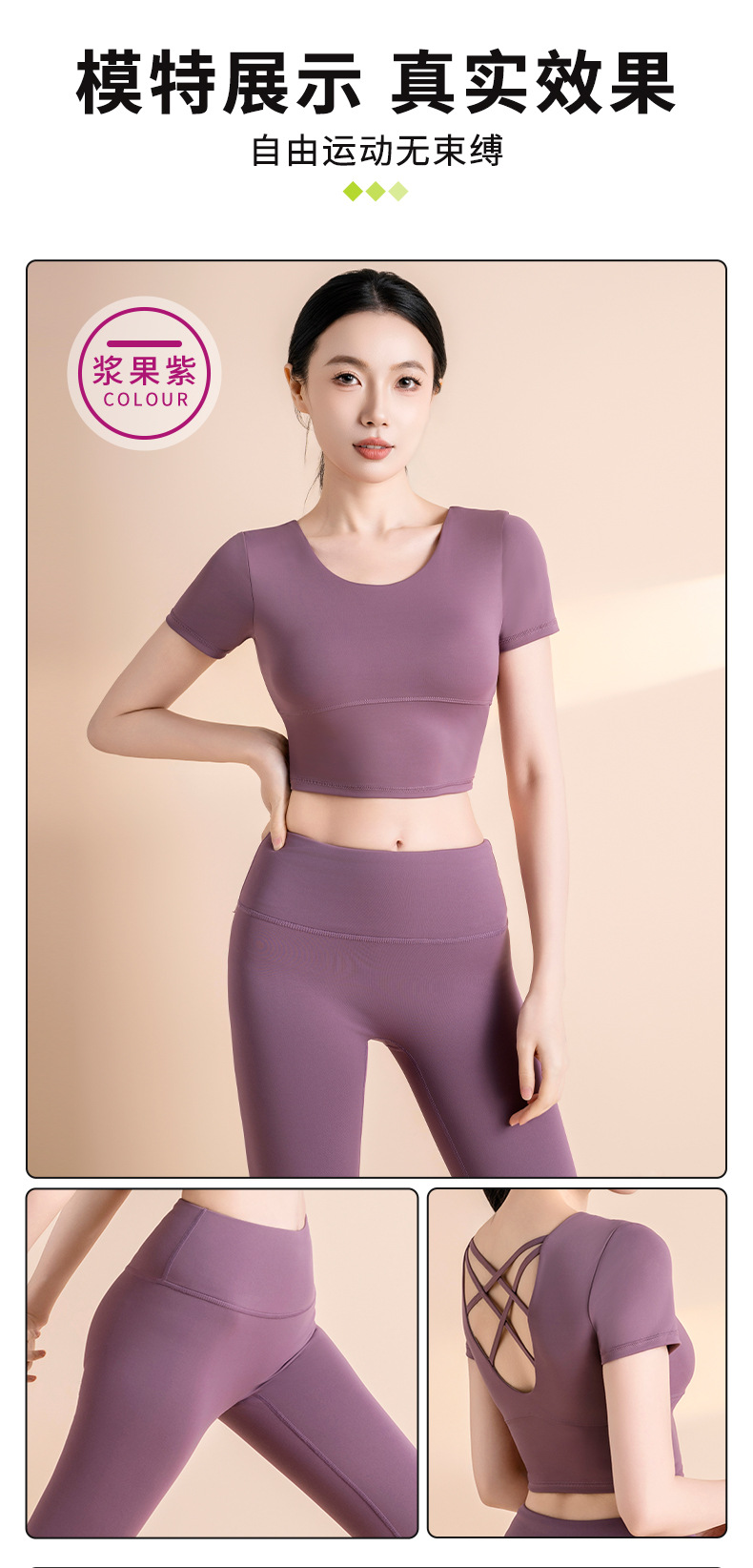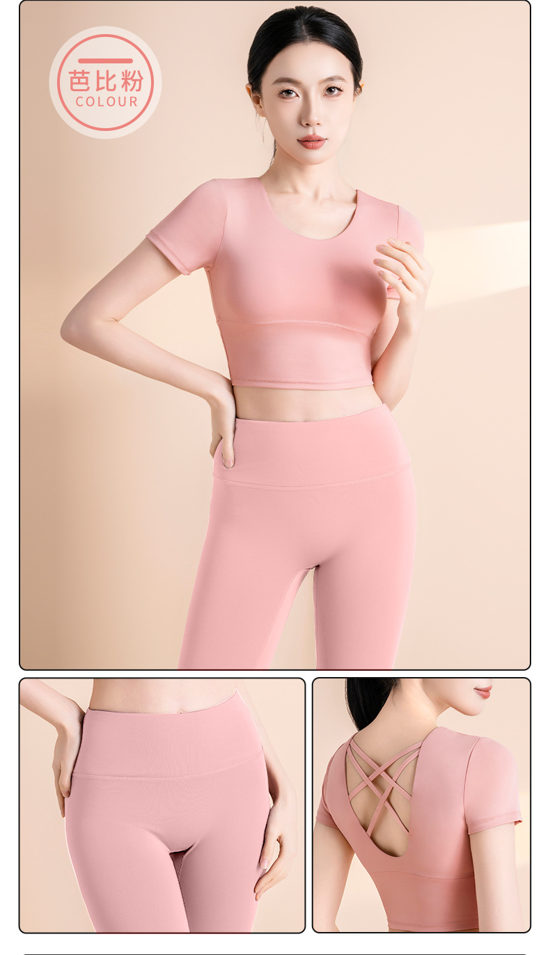 交叉美背瑜伽服套装显瘦吸湿速干运动健身裤上衣裸感一体式胸垫女