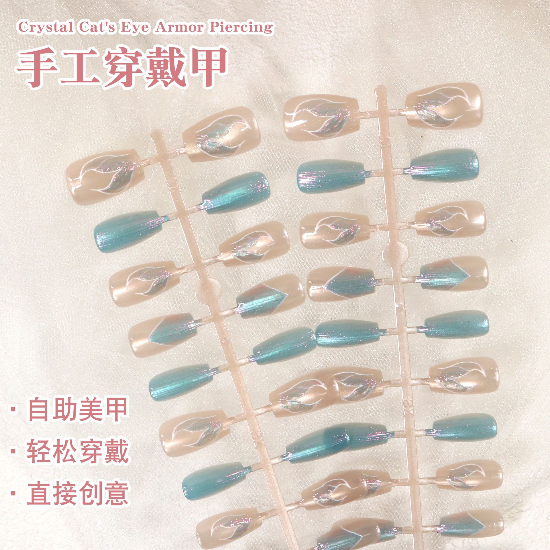 猫眼短梯穿戴甲合集厂家直销 DIY手工穿戴甲片鎏金爆闪假指甲甲片