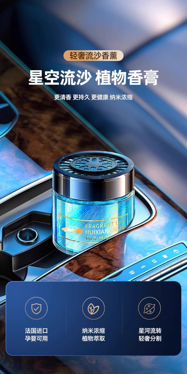 车载香薰流沙固体香膏香奈qu味空气清新剂车载香水装饰香氛小摆件