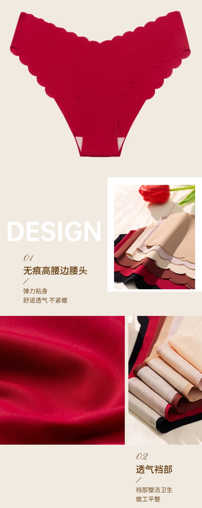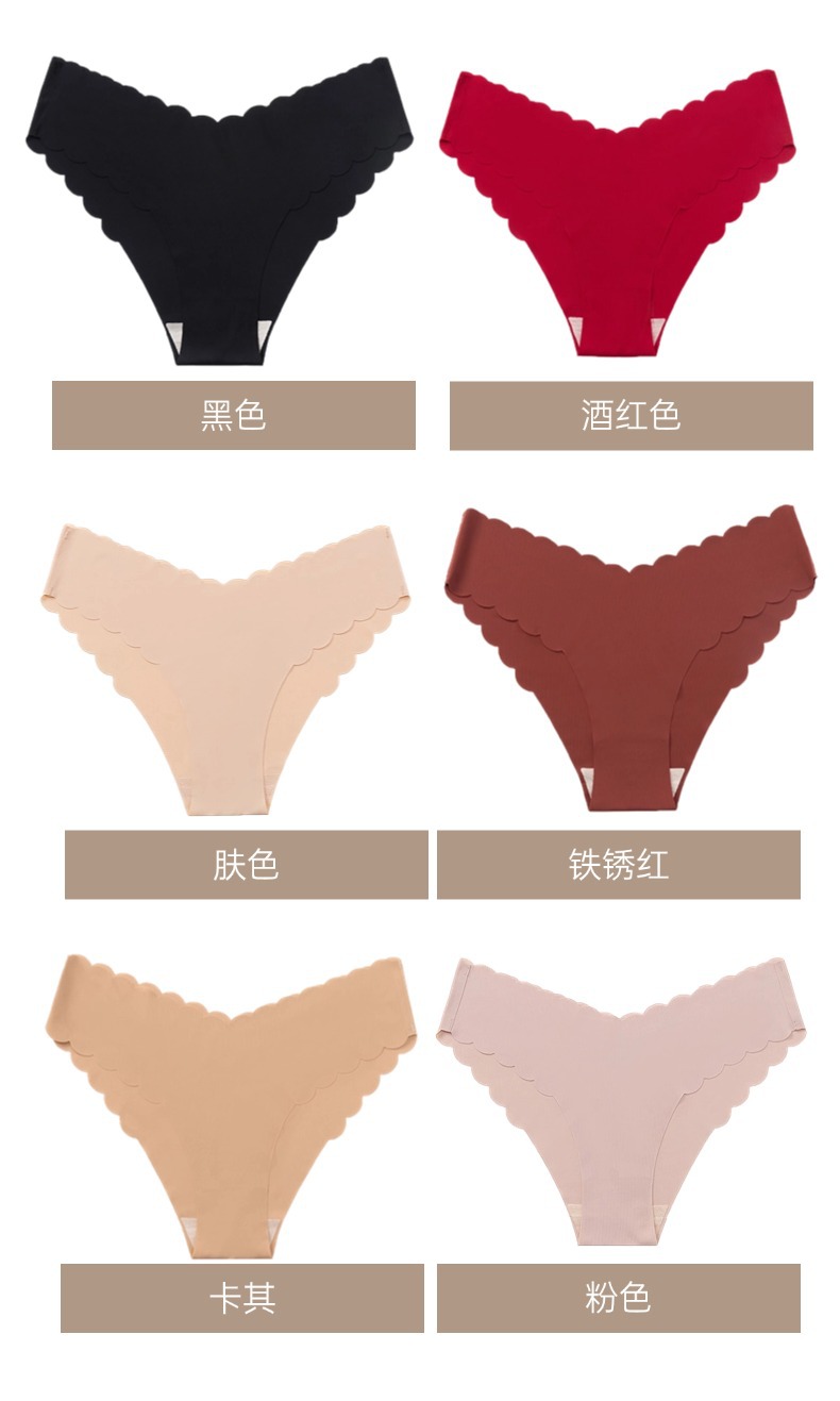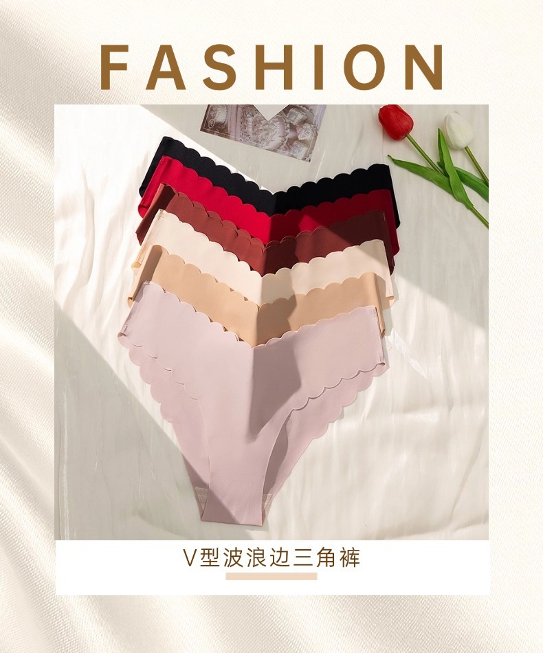 新款V型波浪边无痕冰丝内裤女士低腰大码三角裤纯棉裆透气速干HOT