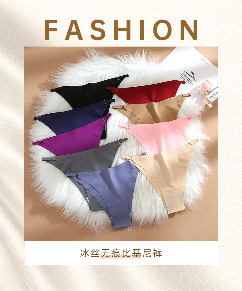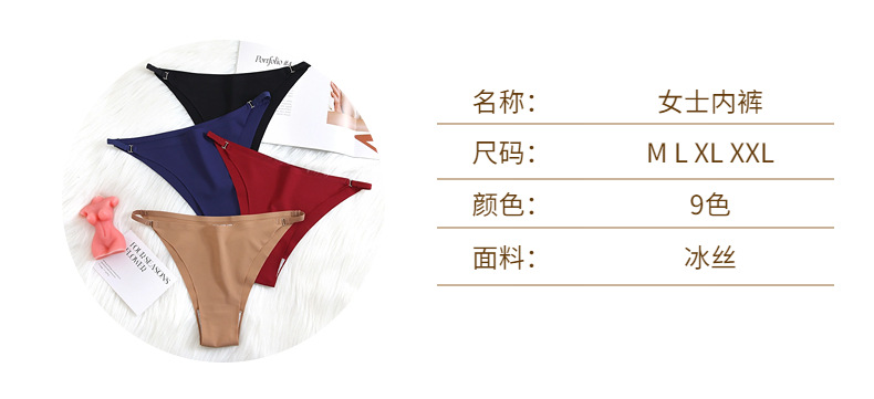 外贸冰丝无痕内裤女时尚简约纯色细带三角裤性感比基尼裤舒适裤头
