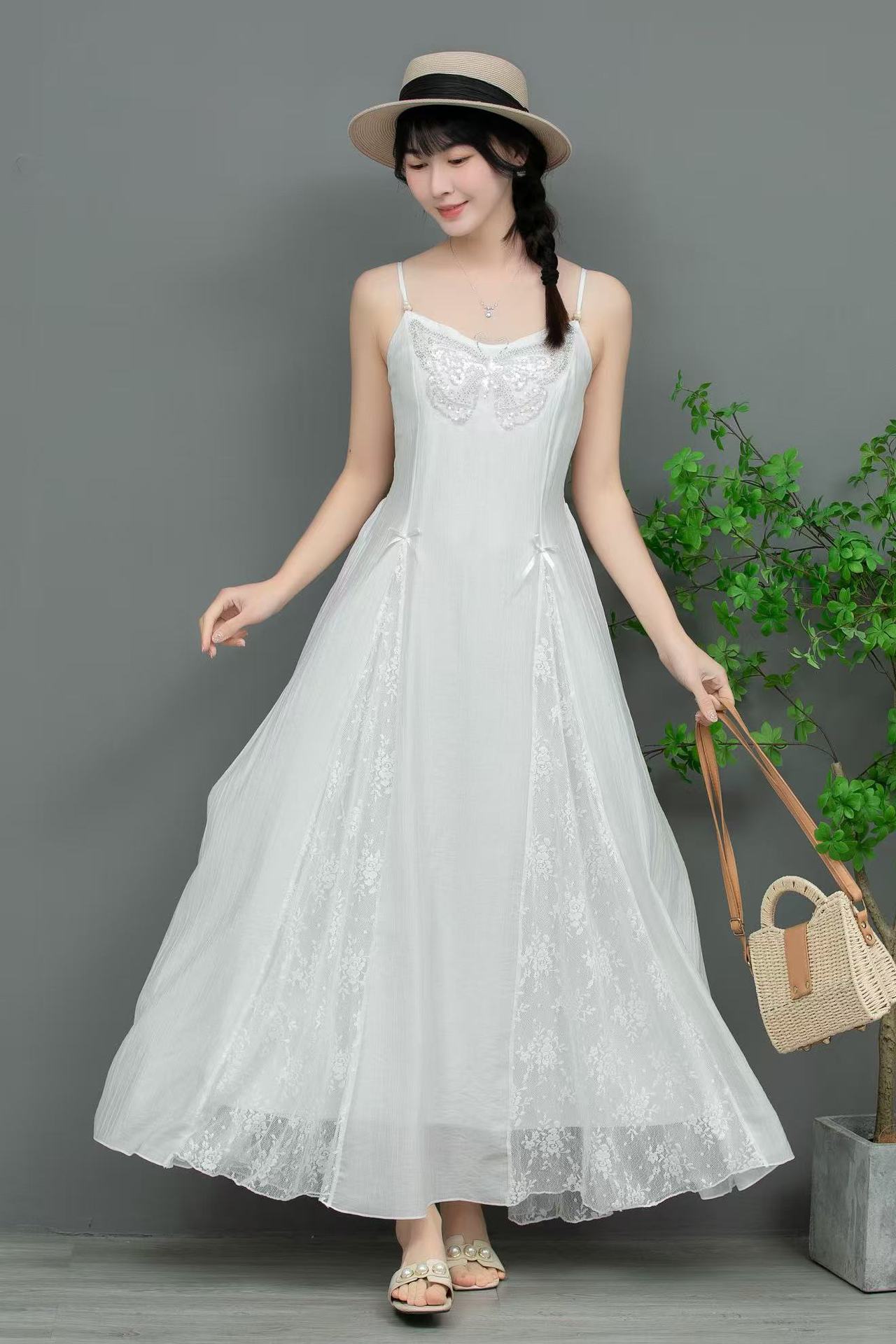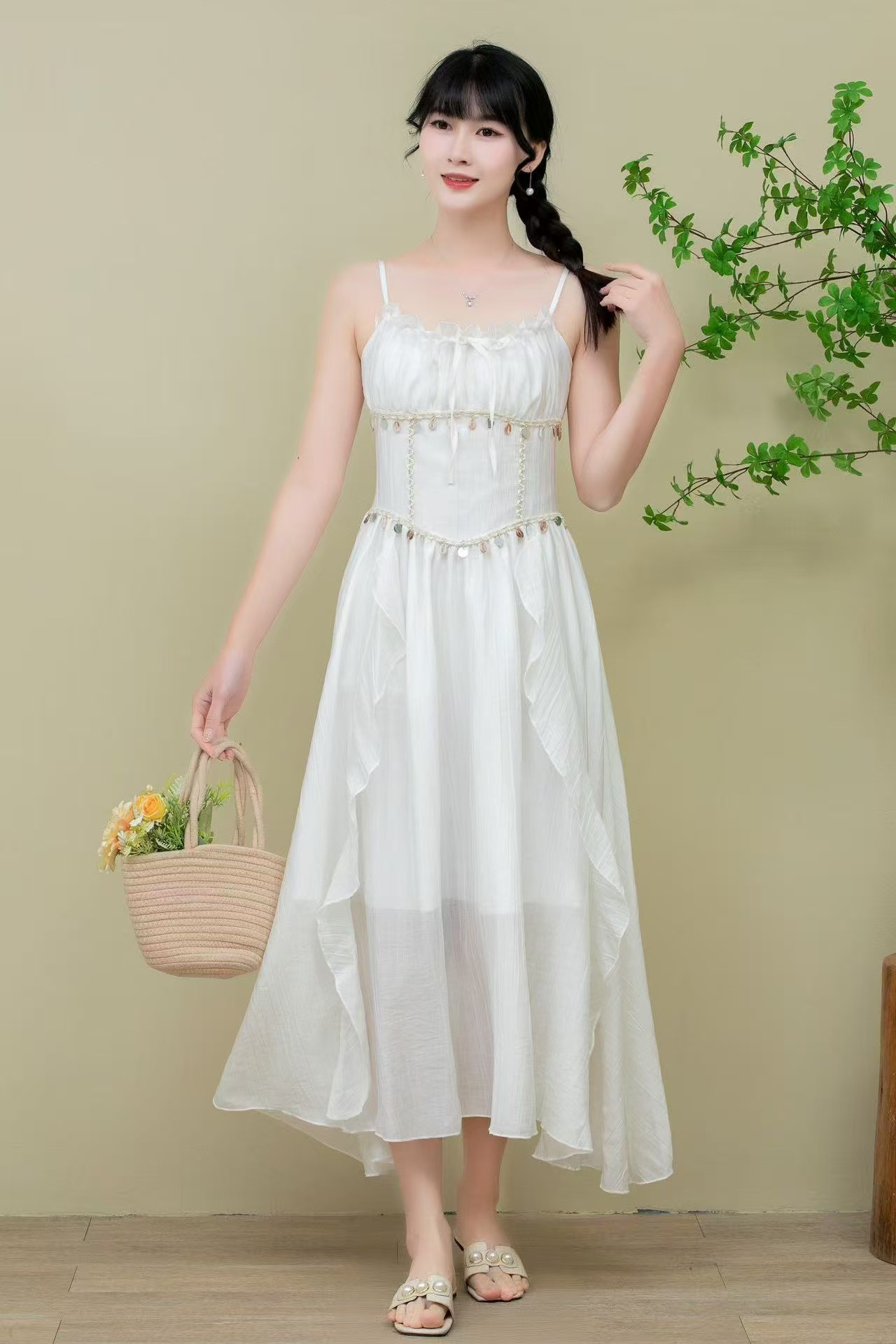民族风可扎染白胚吊带连衣裙女装中长吊带连衣裙批发