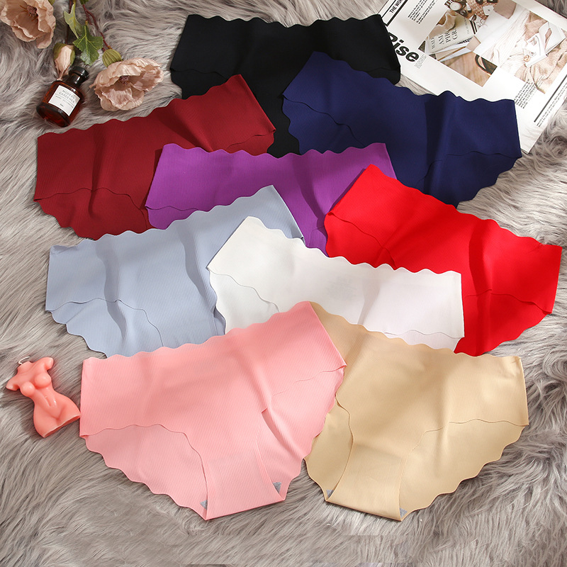 外贸螺纹冰丝无痕内裤女时尚波浪边女士三角裤舒适不勒腿透气裤头