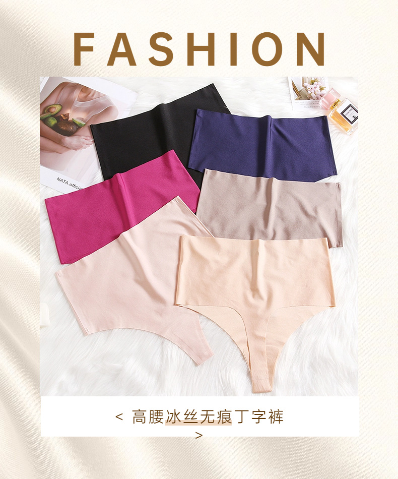 热卖外贸高腰丁字裤柔软冰丝无痕内裤女透气珠光面料性感运动T裤