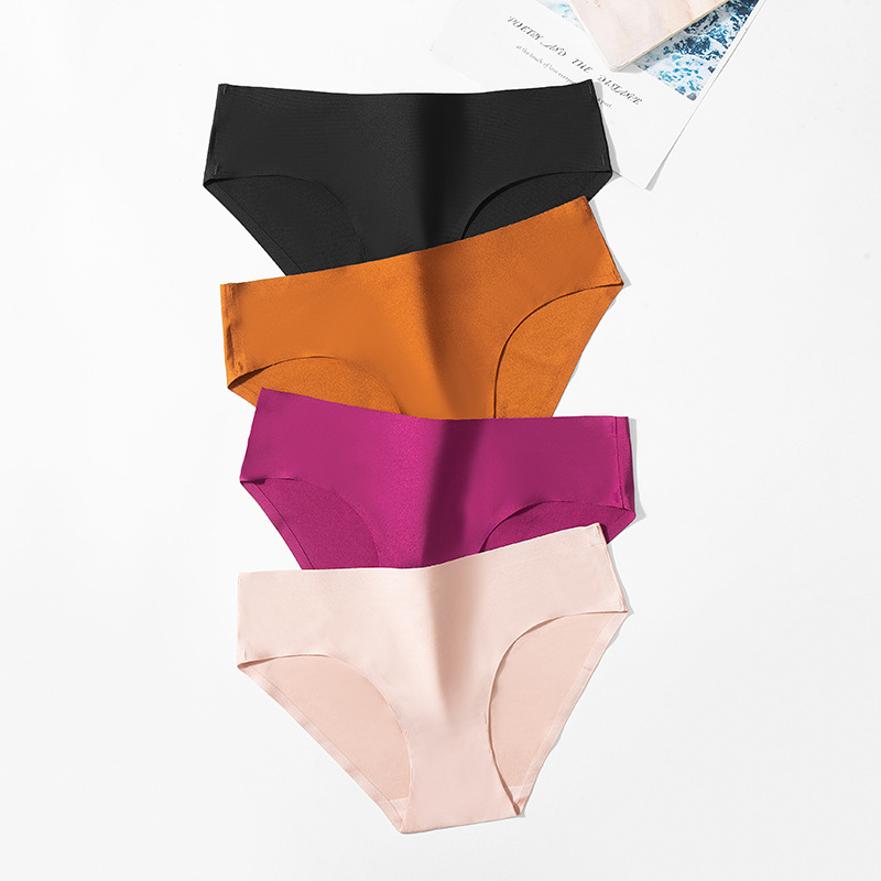 外贸运动舒适女士三角裤珠光冰丝无痕内裤女透气简约裤头欧美爆款