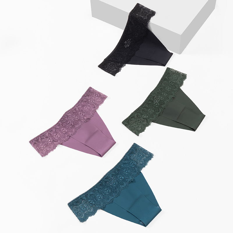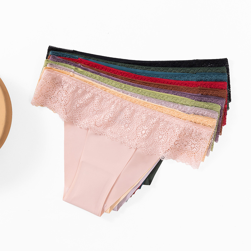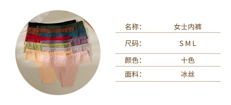 爆款外贸蕾丝内裤女法式浪漫性感女士三角裤冰丝透气高弹欧码裤头