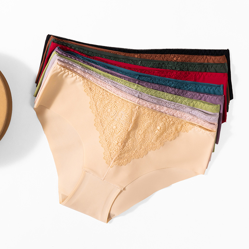 新款蕾丝内裤女法式浪漫性感女士三角裤组合冰丝透气高弹大码内裤