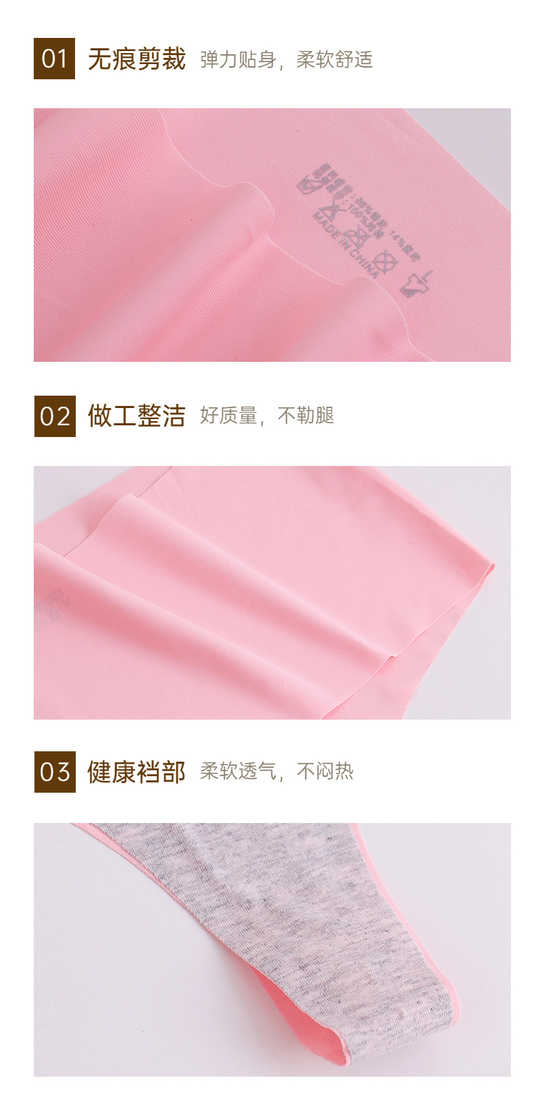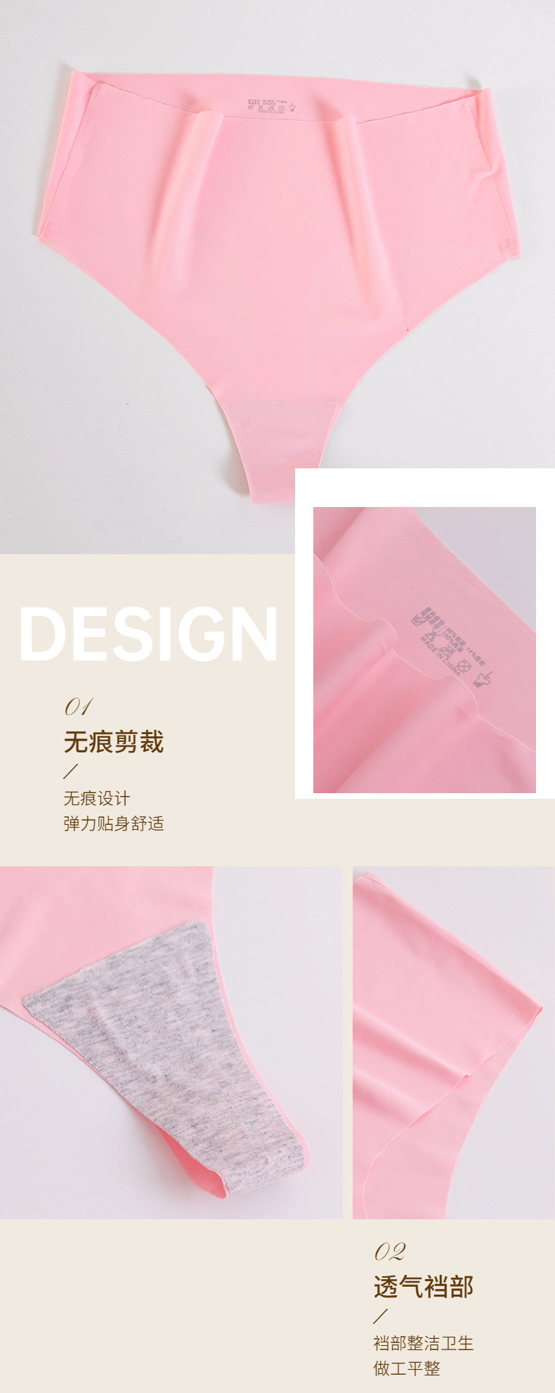 外贸中腰无痕内裤女冰丝丁字裤女士简约运动透气T裤舒适大码裤头