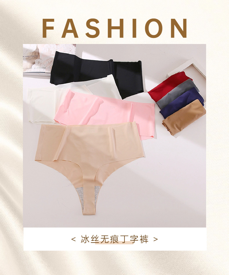 foreign trade mid waist traceless underwear women‘s ice silk t-back women‘s minimalism breathable t-shaped panties comfortable plus size pants