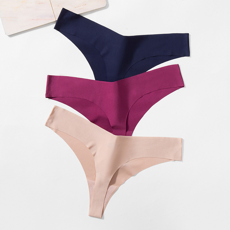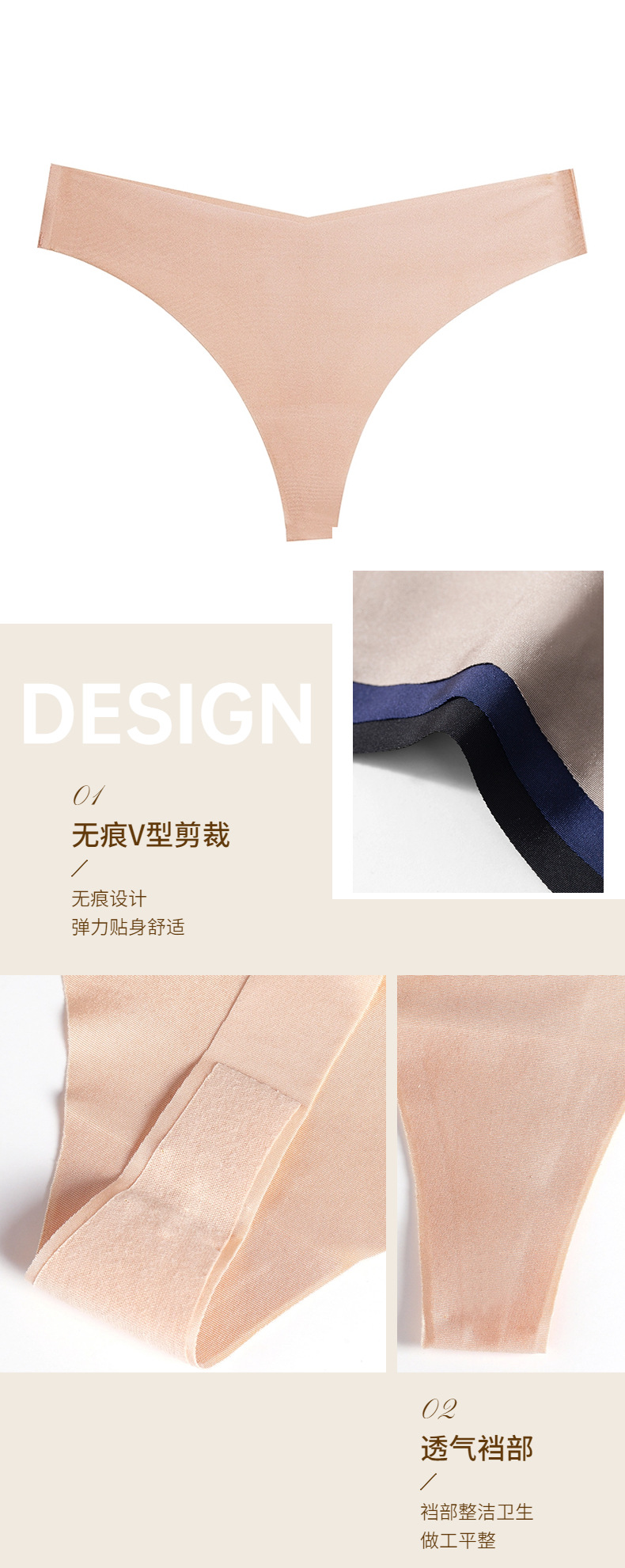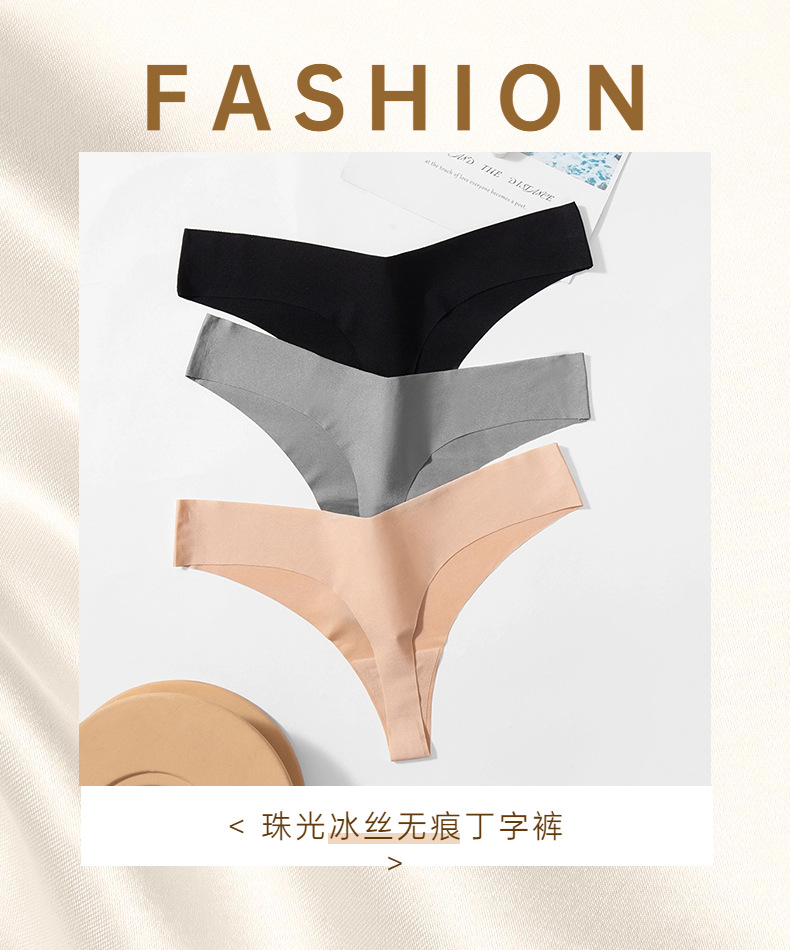 跨境冰丝无痕丁字裤珠光V剪裁时尚内裤女2XL裤头柔软舒适性感T裤