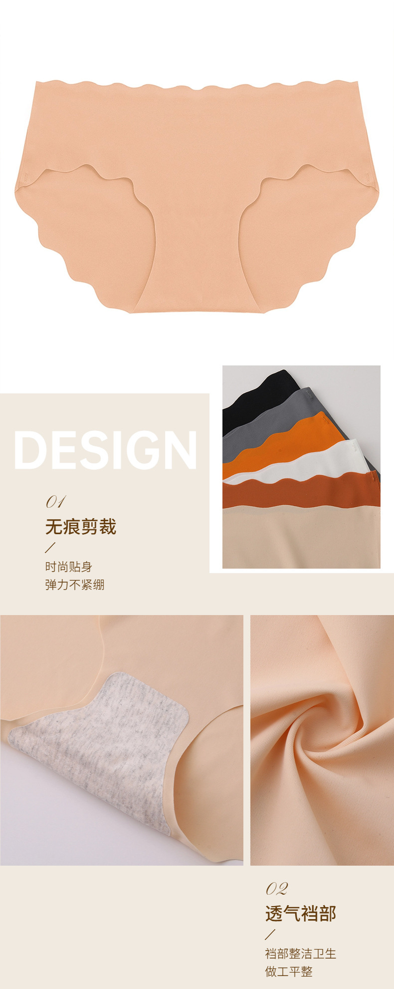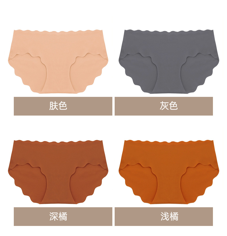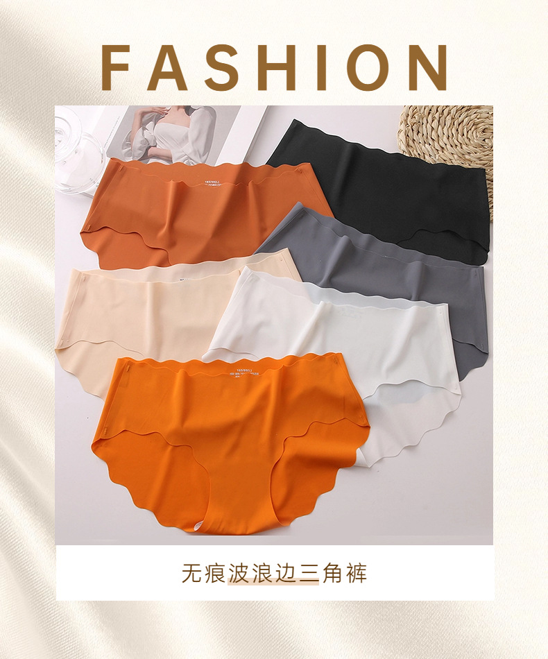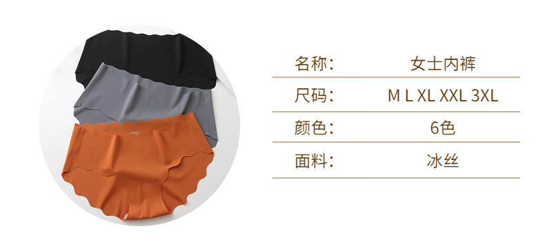 跨境冰丝无痕内裤女士甜美可爱波浪边少女三角裤大码舒适透气裤头