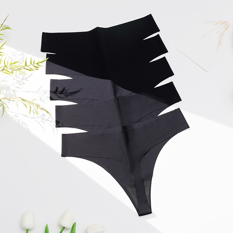 新款纯黑色冰丝无痕丁字裤V剪裁时尚内裤女大码裤头柔软舒适性感T