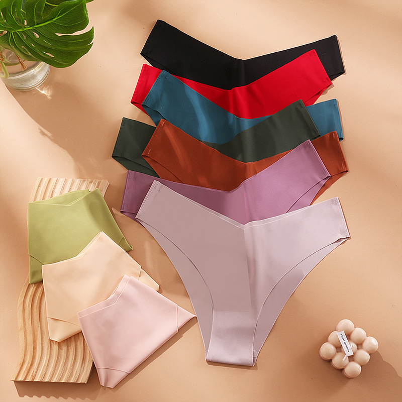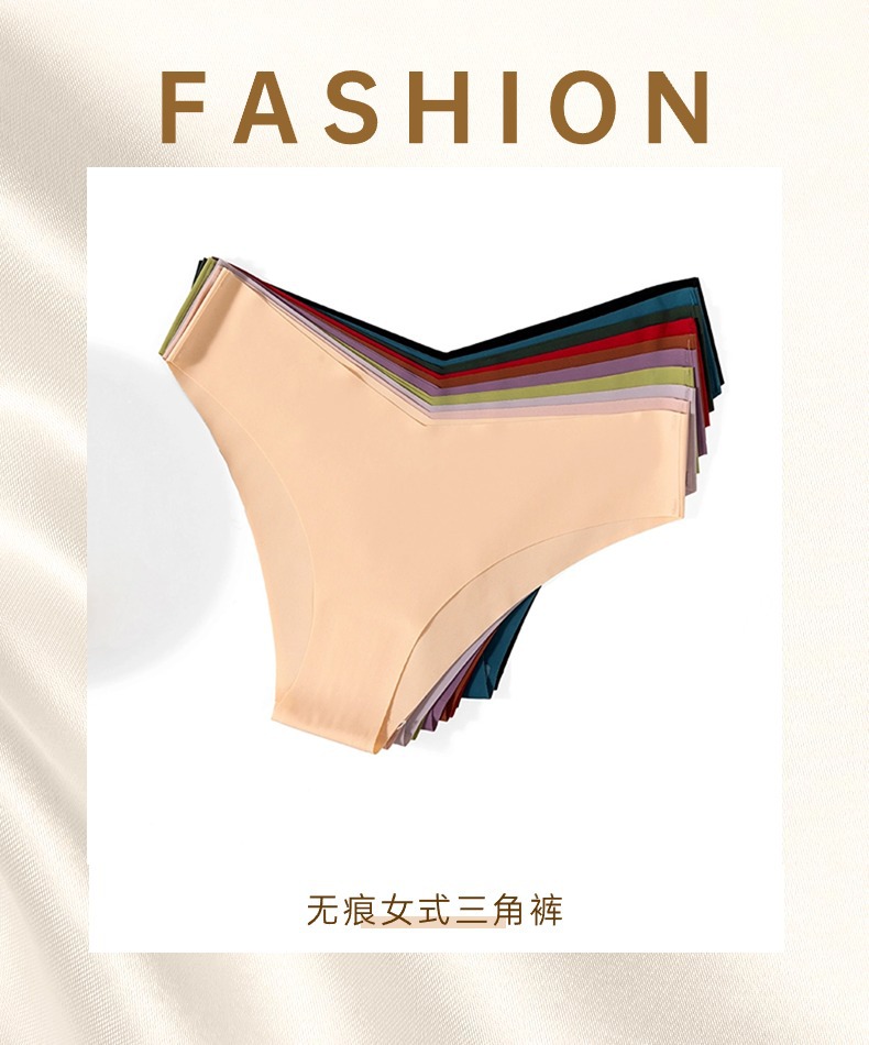 跨境爆款女士无痕冰丝内裤V随意裁简约纯色低腰透气三角裤panties