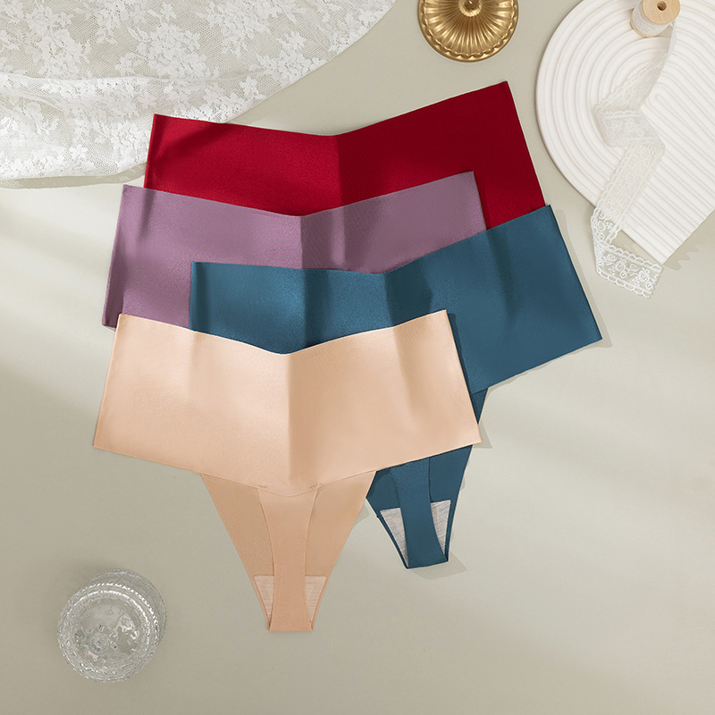 外贸跨境爆款V型高腰丁字裤纯色冰丝无痕内裤女性感欧美风运动T裤