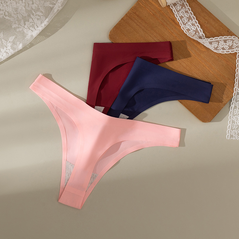 cross-border solid color simple t-back women‘s ice silk seamless panties women‘s sport low waist sexy t-shaped panties comfortable pants