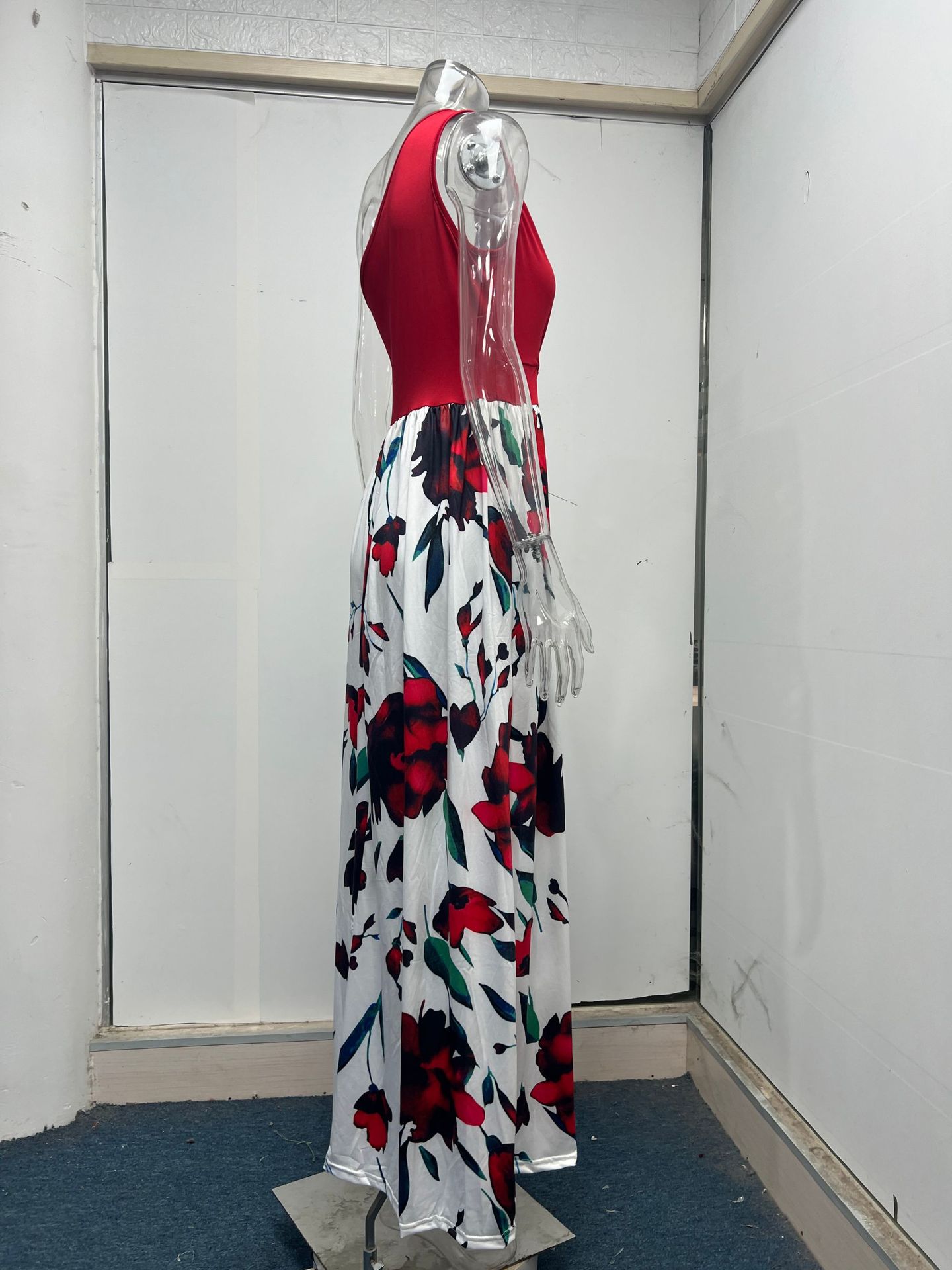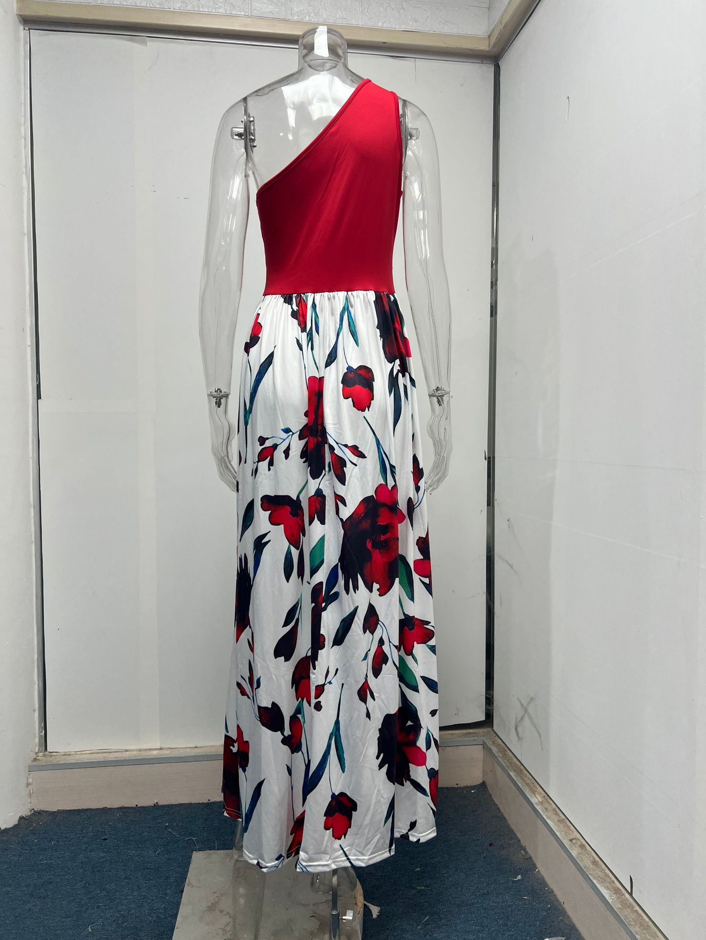 2025新款斜肩长裙气质无袖性感高腰开叉连衣裙亚马逊欧美女装外贸
