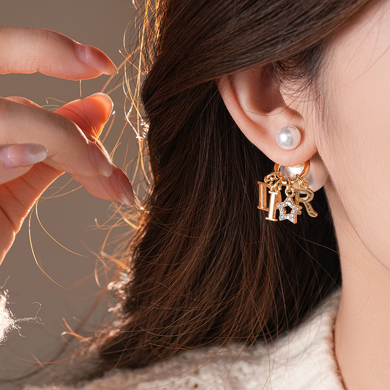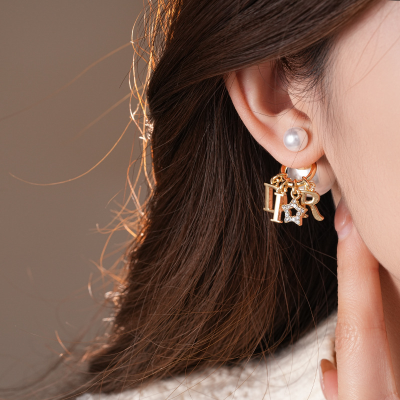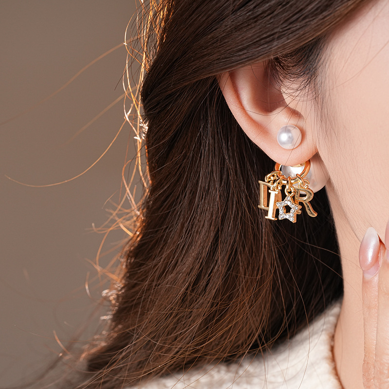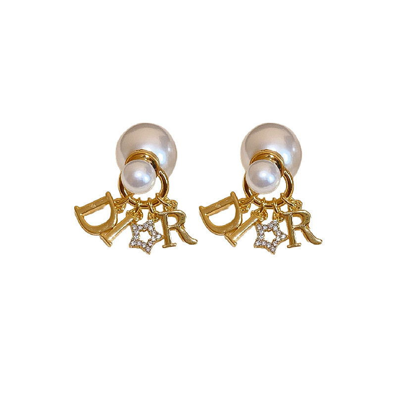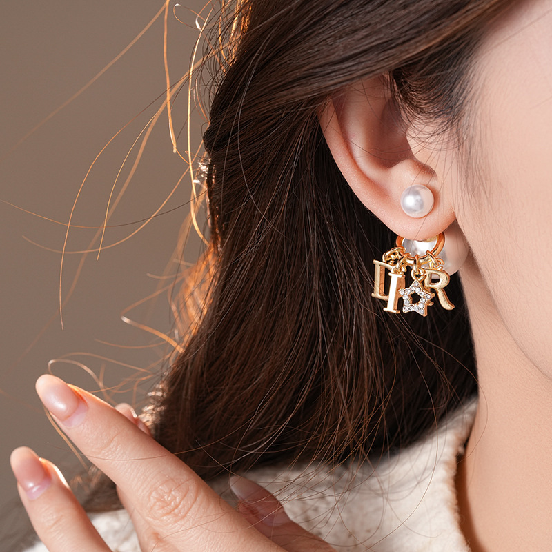 2025新款银针镶钻星星字母圆球珍珠耳钉个性夸张感一款两戴式耳坠