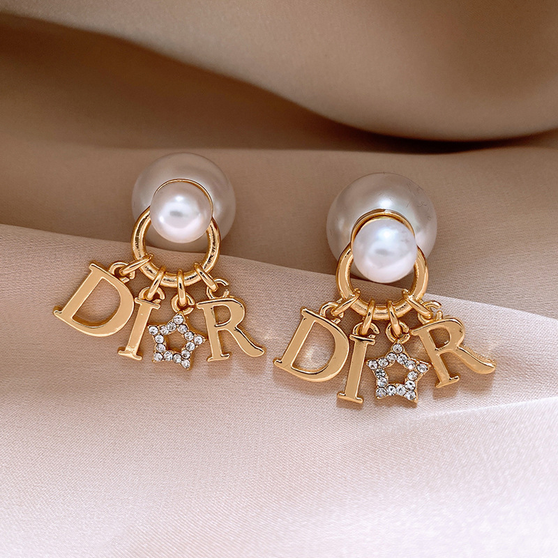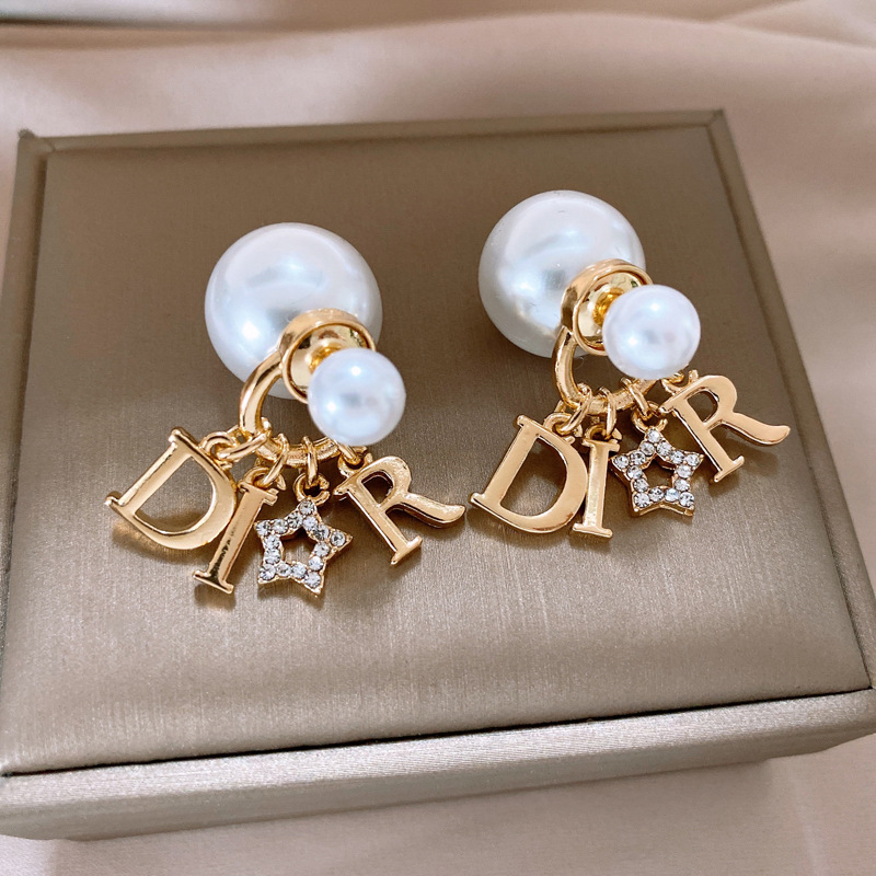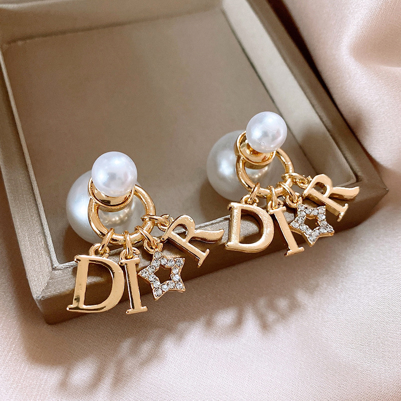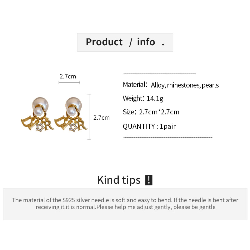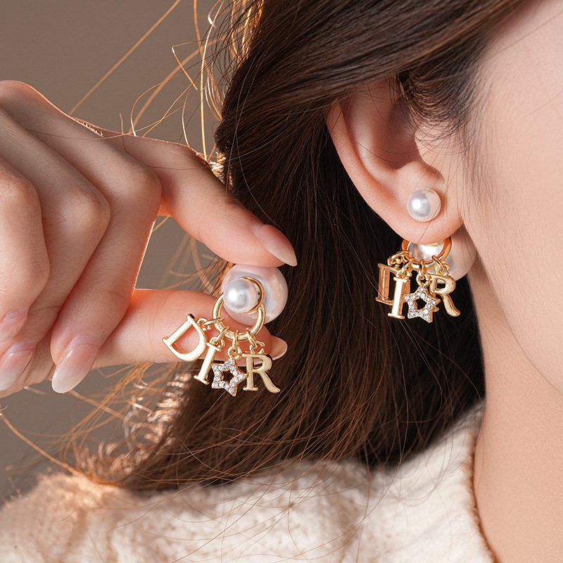 2025新款银针镶钻星星字母圆球珍珠耳钉个性夸张感一款两戴式耳坠