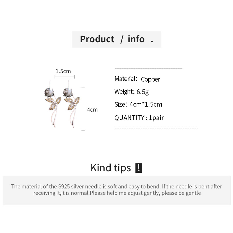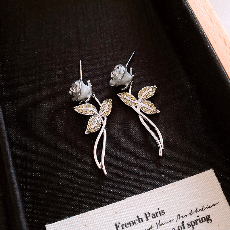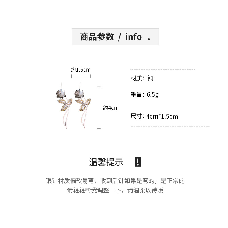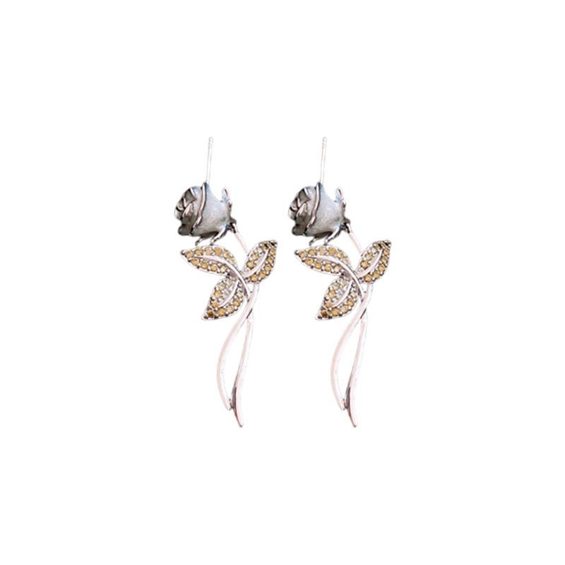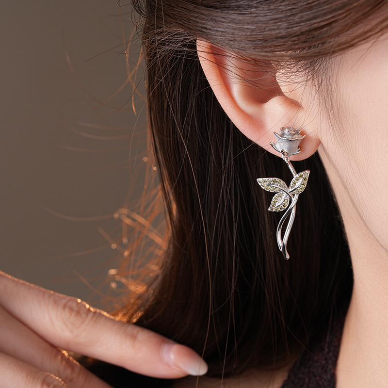 银针田园锆石玫瑰花花朵树叶耳钉时尚简约个性耳环轻奢高级感耳饰