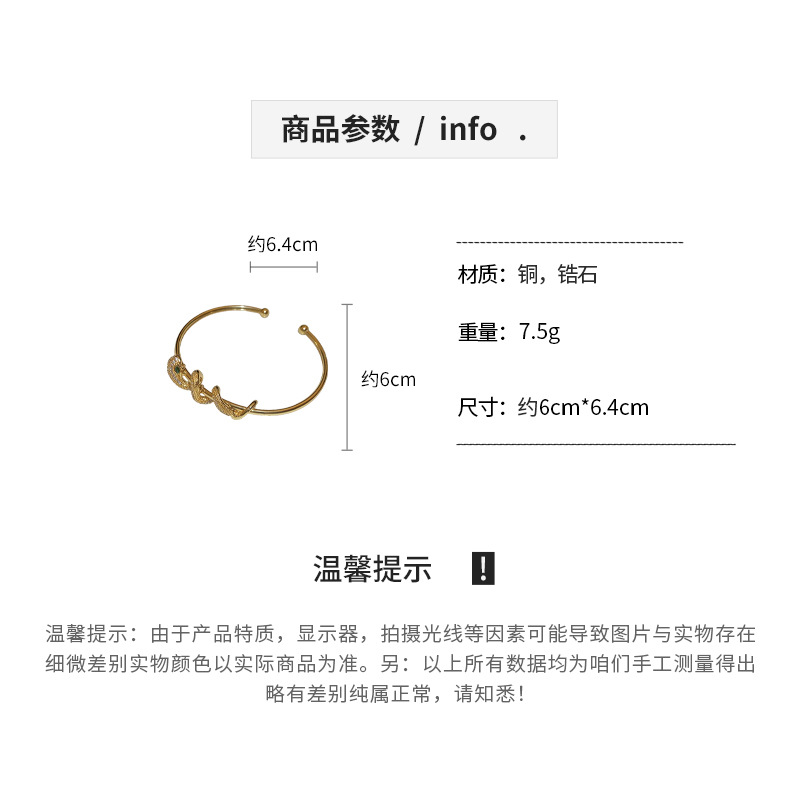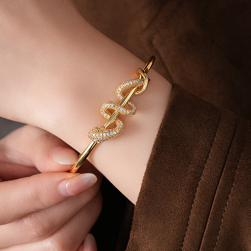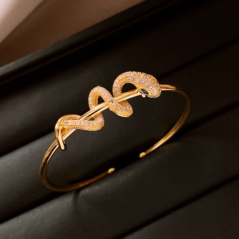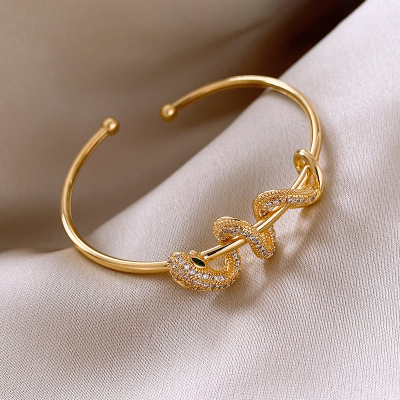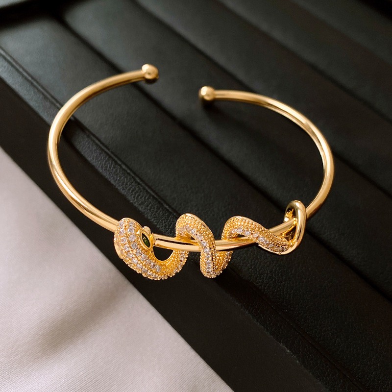真金电镀锆石灵蛇缠绕开口手镯精致通勤气质手环时尚高级感手饰女