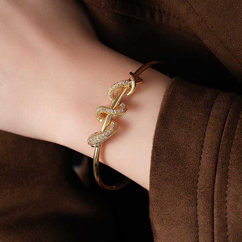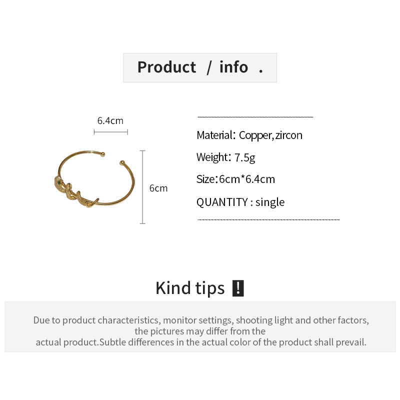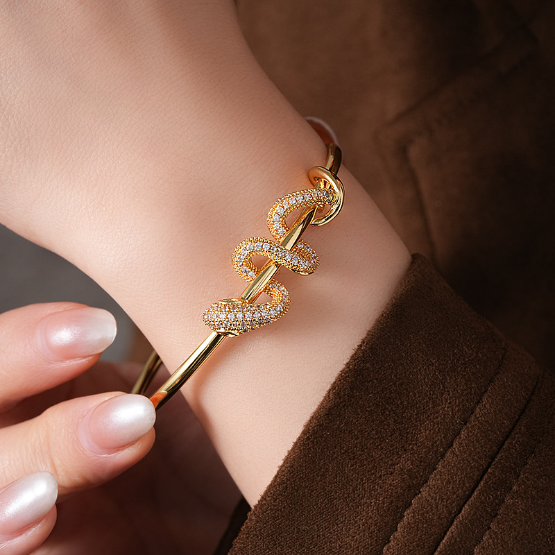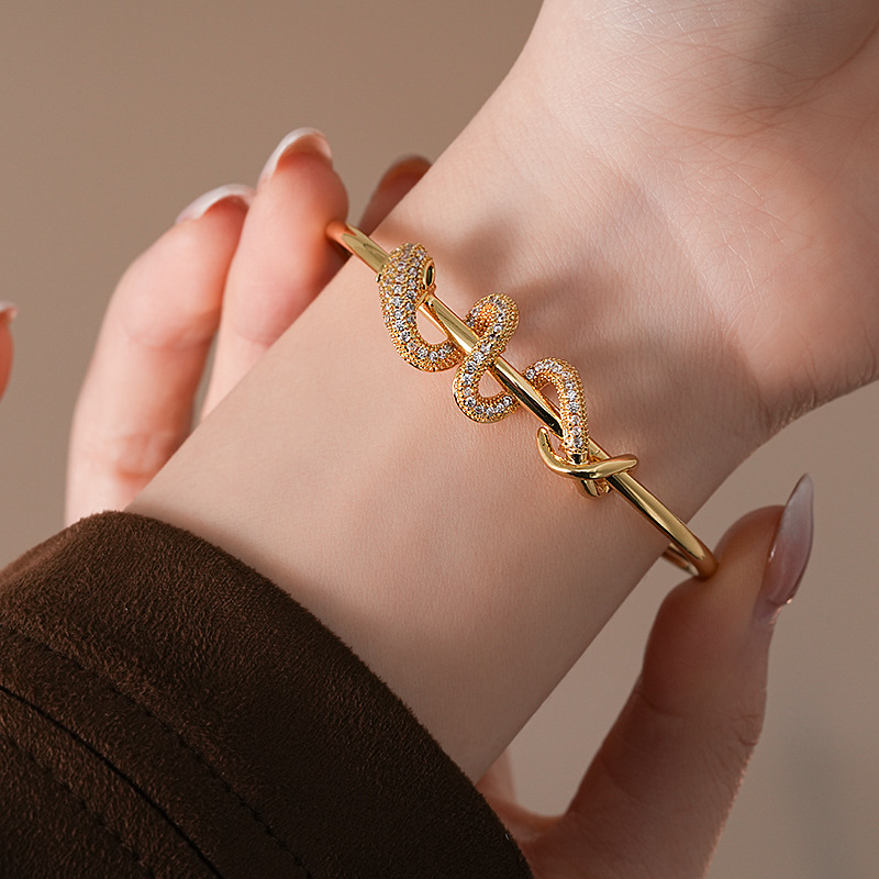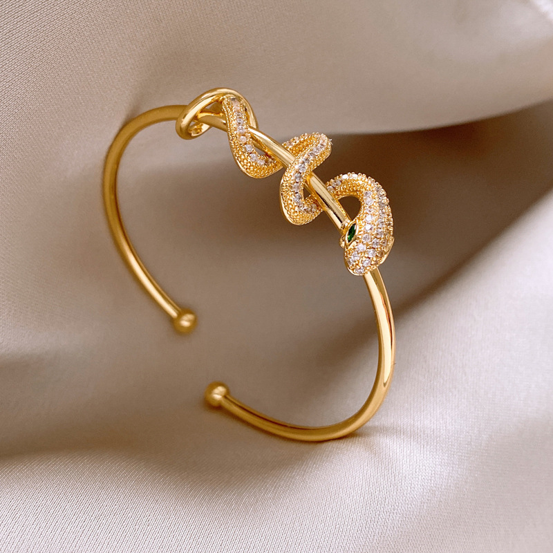 真金电镀锆石灵蛇缠绕开口手镯精致通勤气质手环时尚高级感手饰女